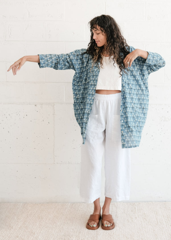 We design and sew all of our clothing in-house in our own studios in Vancouver, Canada, and in India. Our garments feature a range of artisan techniques such as handwoven cloth, handspun threads, block printing, ikat dyeing, hand-tied bandhani and natural dyes. Read more about Maiwa's Slow Clothes and how they fit a variety of body types.