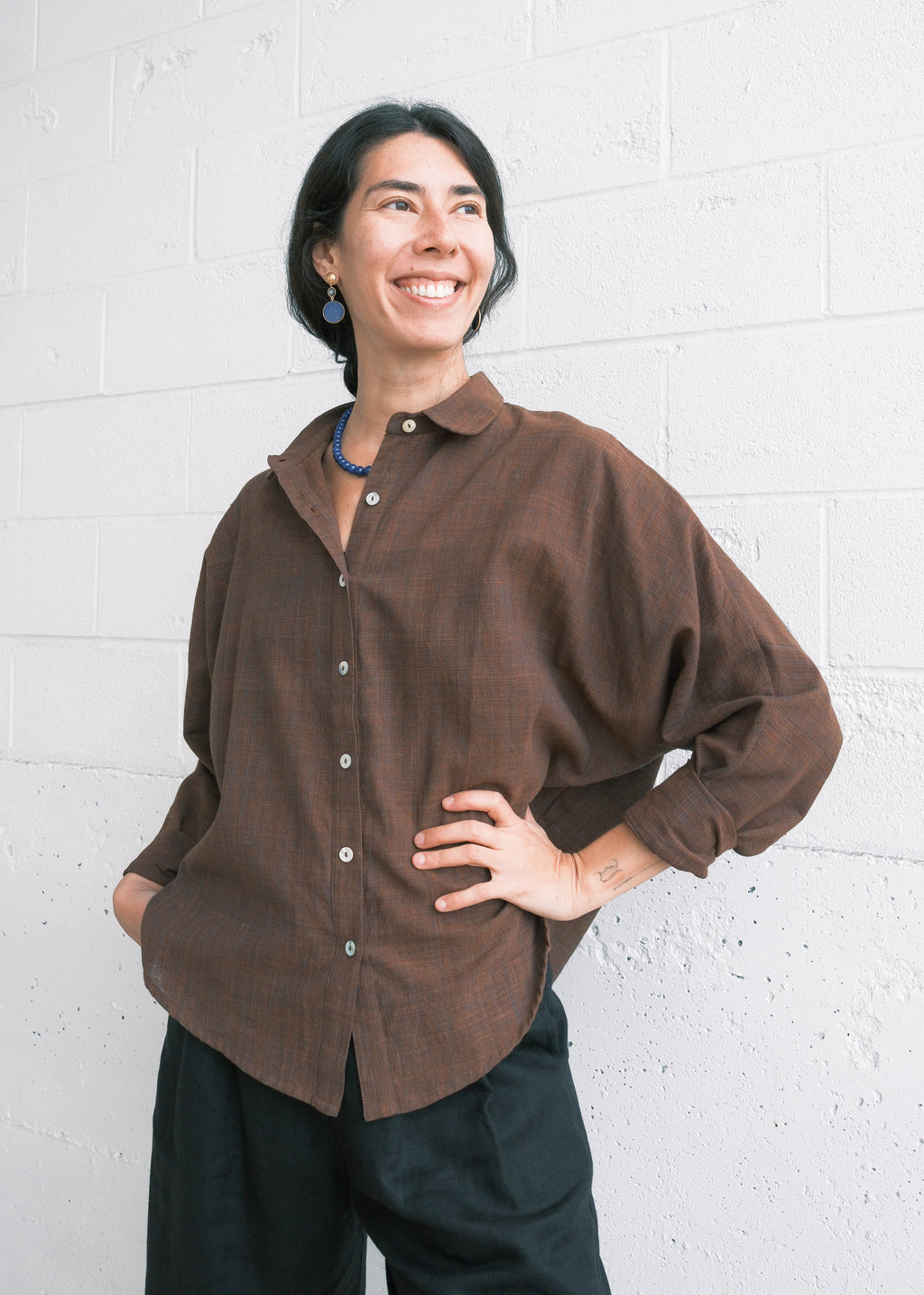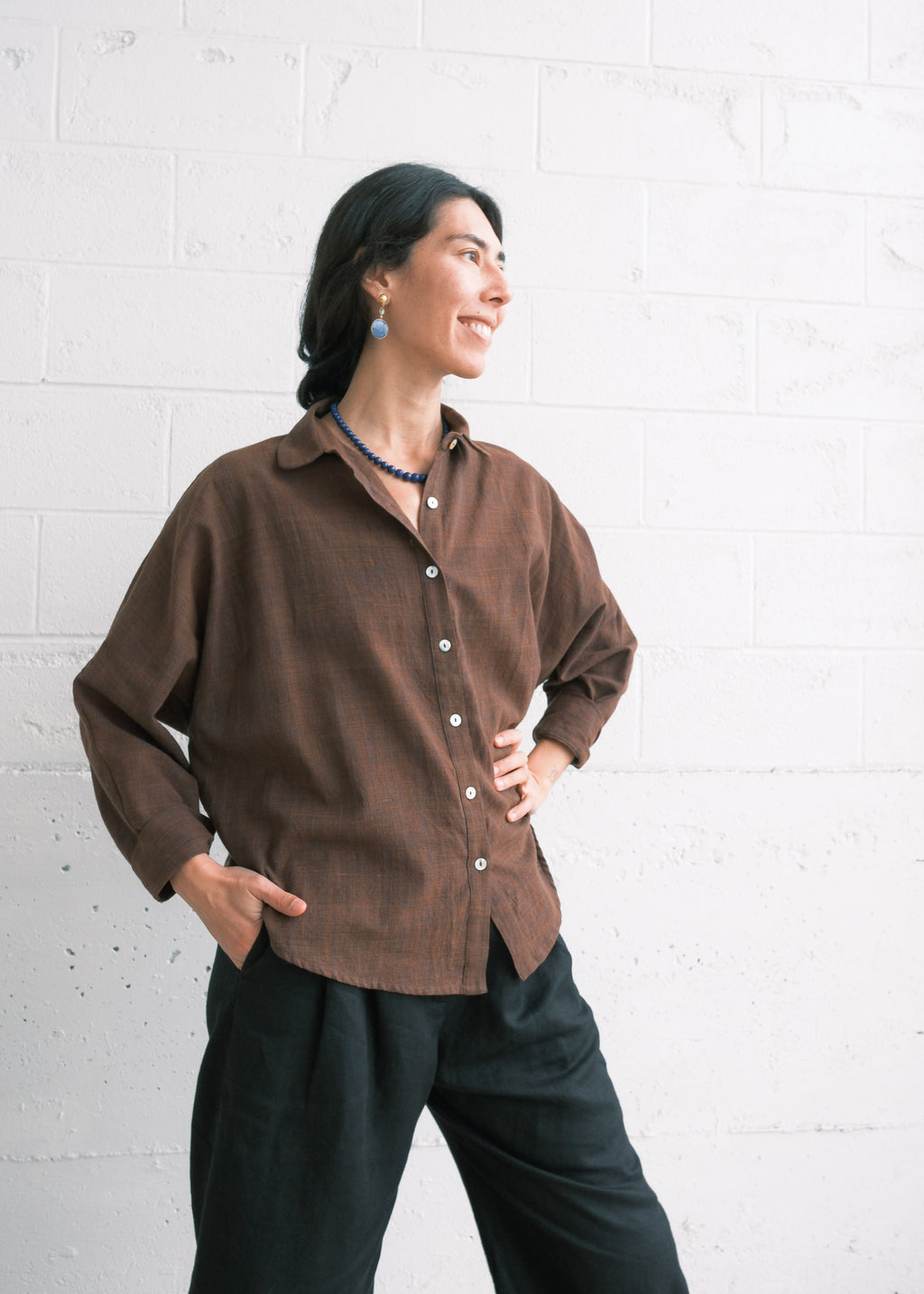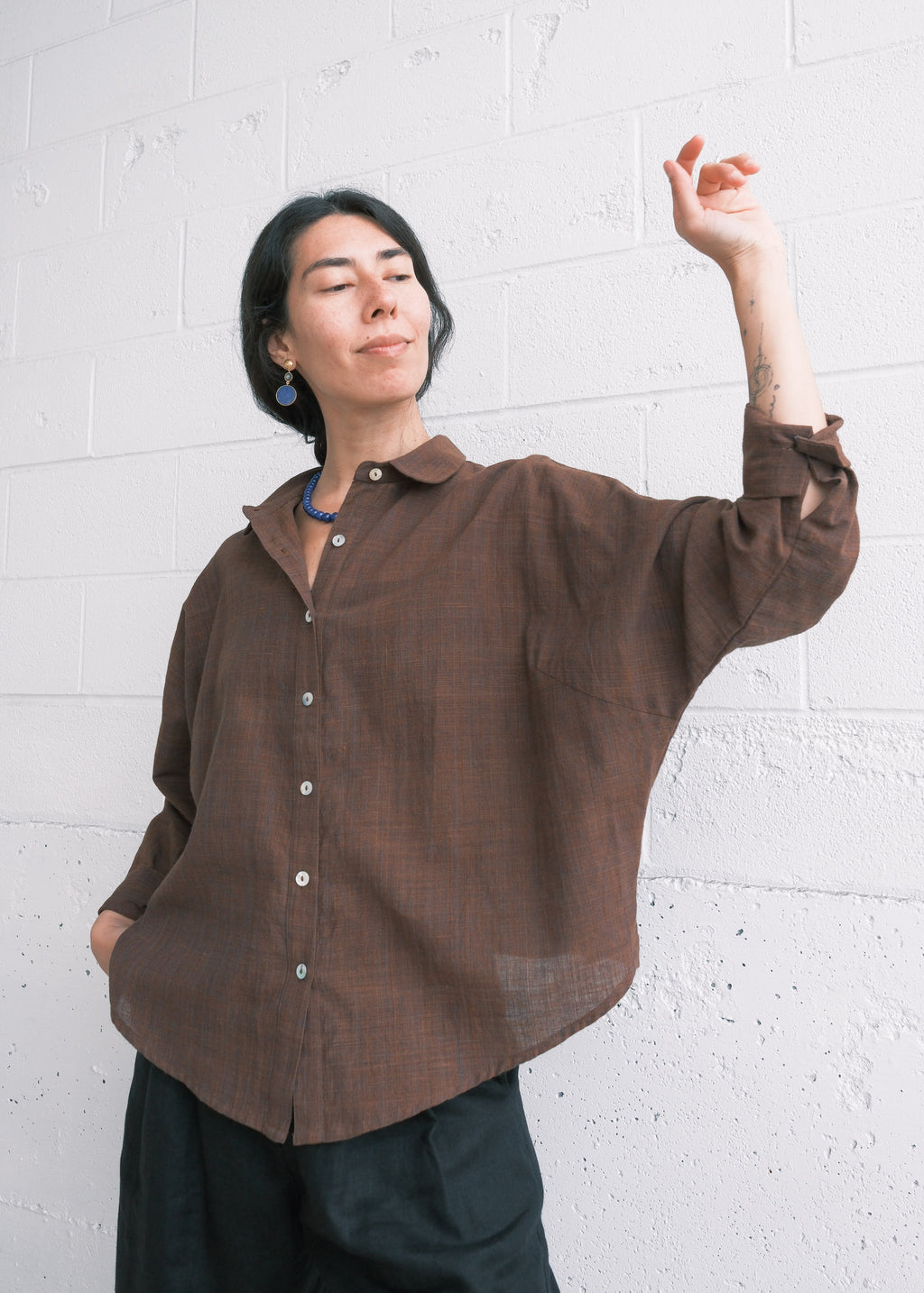 The Manali shirt is a classic button up with a shorter profile. We love this style for all its thoughtful details - accentuated buttoned cuff, traditional hem triangle at the sides, bust darts, and rounded collar. An easy to wear piece with a soft fit that you will reach for again and again.
