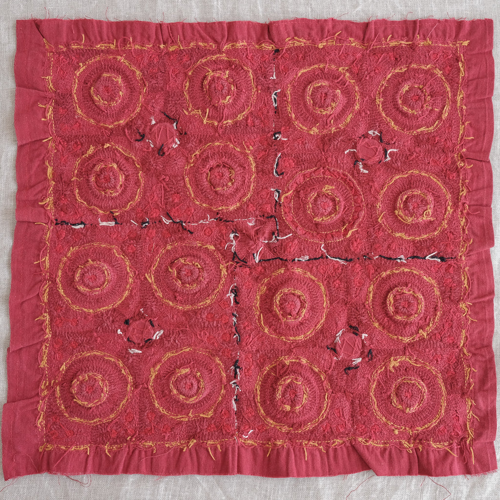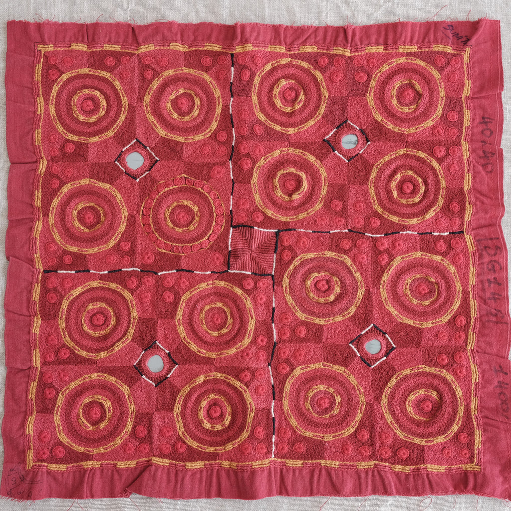 Banjara Embroidery deploys one of the largest stitch vocabularies of any cultural group. Fully committed to strong bold patterns, most motifs are based on a geometry of nested and altered squares. Both mirrors and motifs have auspicious power and are believed to offer protection from harm.
