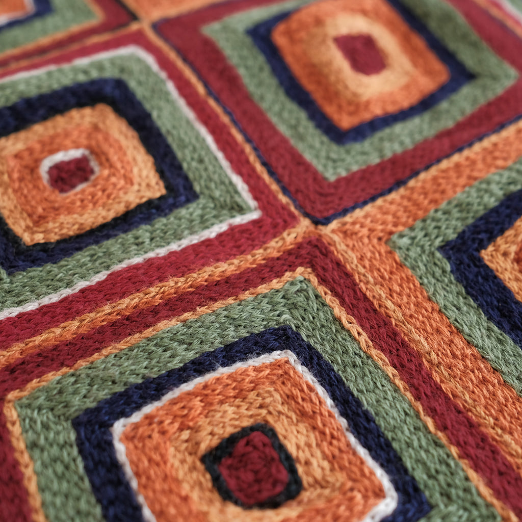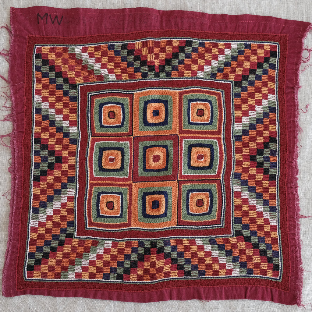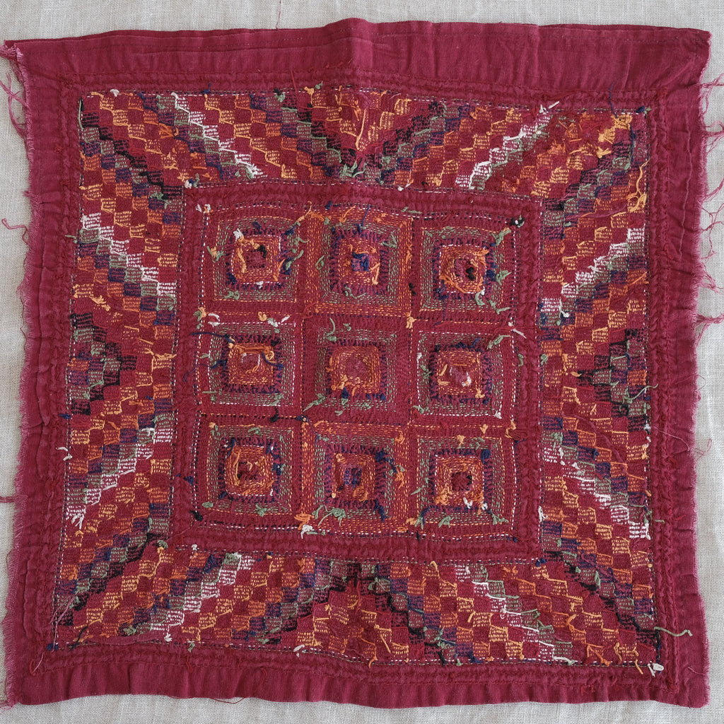 Banjara Embroidery deploys one of the largest stitch vocabularies of any cultural group. Fully committed to strong bold patterns, most motifs are based on a geometry of nested and altered squares. Both mirrors and motifs have auspicious power and are believed to offer protection from harm.