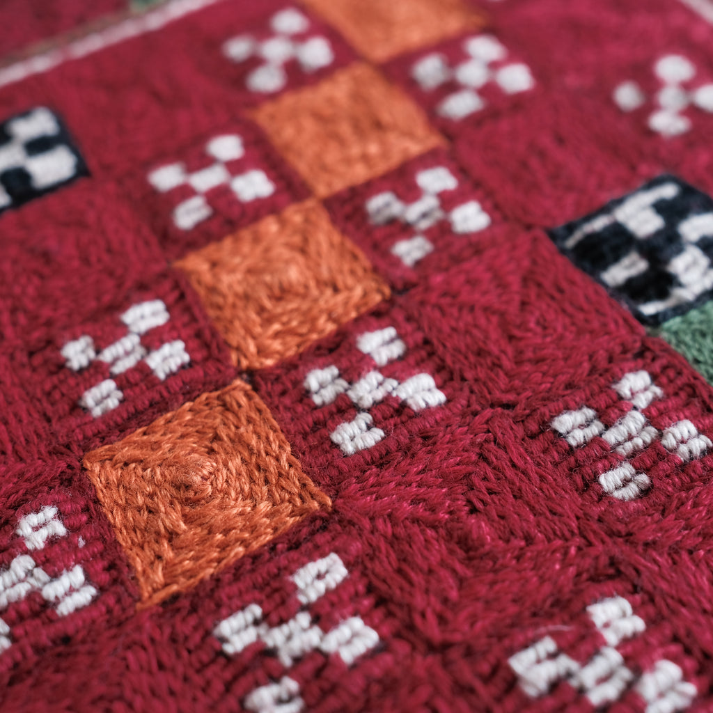Banjara Embroidery deploys one of the largest stitch vocabularies of any cultural group. Fully committed to strong bold patterns, most motifs are based on a geometry of nested and altered squares. Both mirrors and motifs have auspicious power and are believed to offer protection from harm.