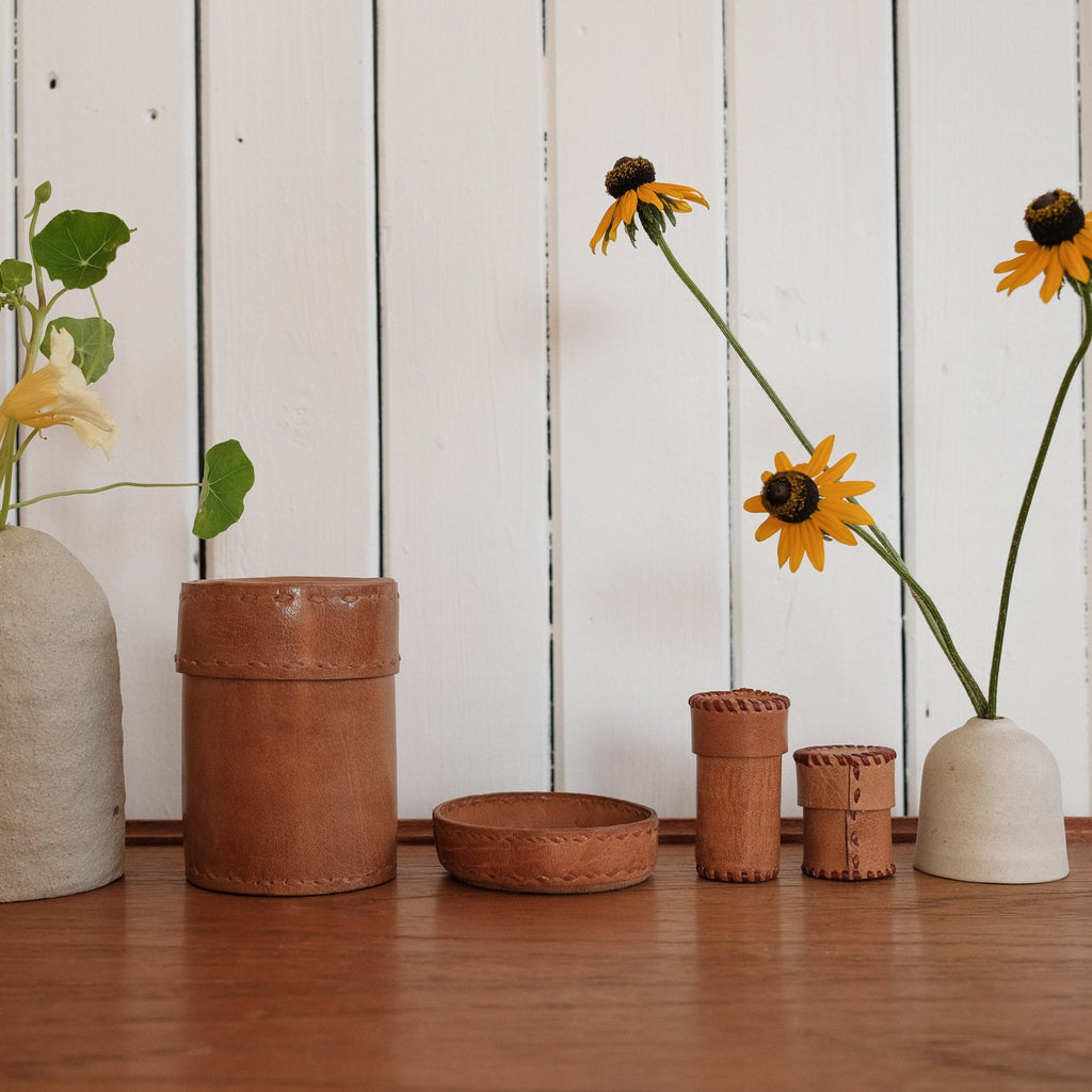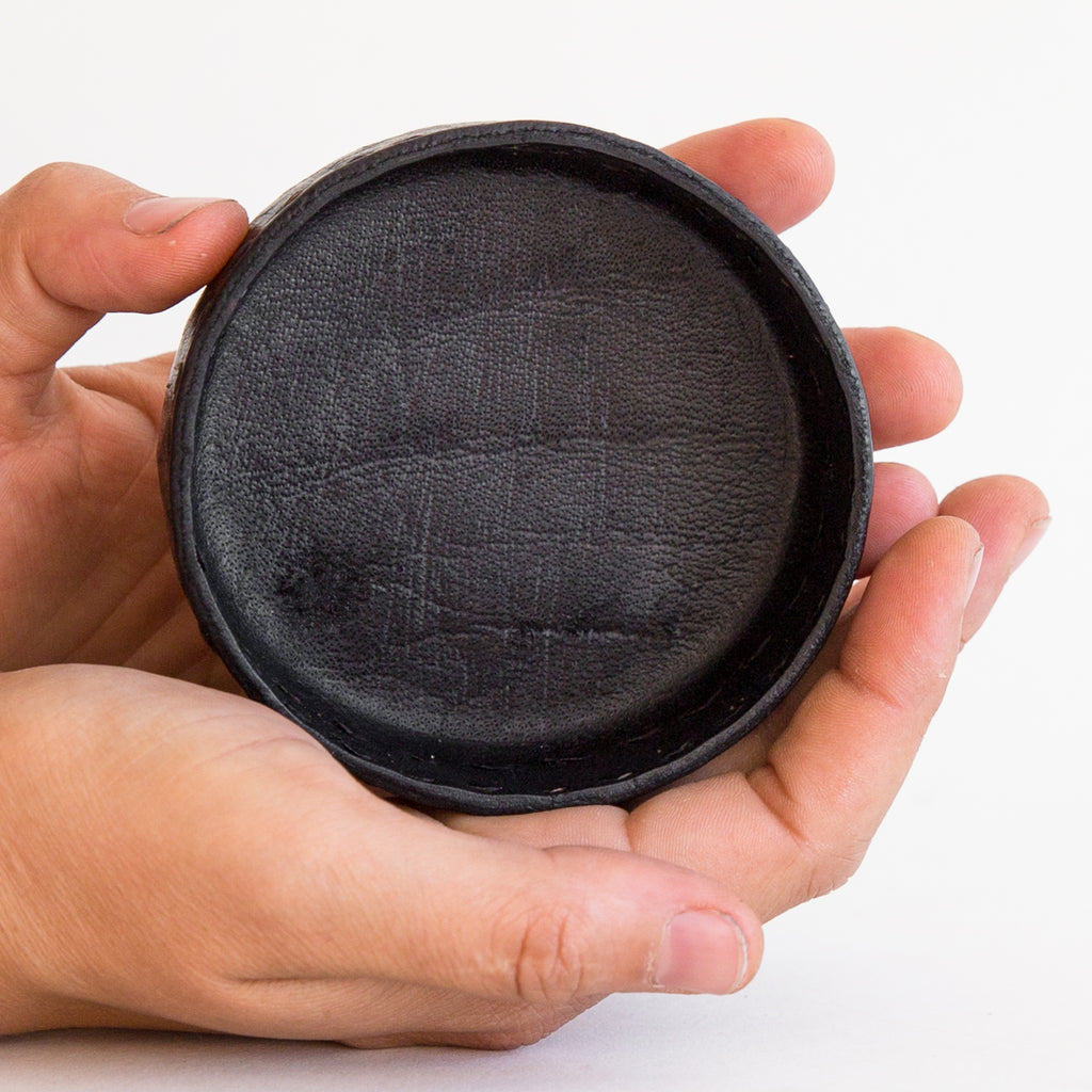 A perfect round hand stitched leather dish to hold your favourite little treasures. We love to put our jewellery in these dishes.
