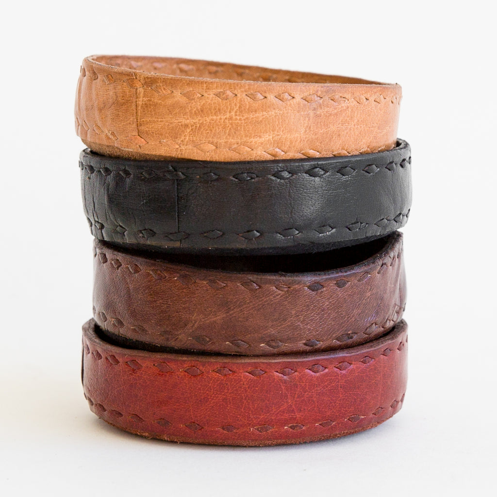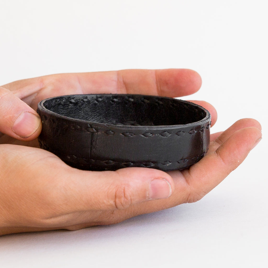 Made by the Artisan's Alliance of Jawaja - a rural cooperative located in Rajasthan, India. Vegetable-tanned leather, burnished and stitched by hand results in a piece to last a lifetime. Use adds subtlety, deepens personality and patina, and bestows a heroic character on Jawaja leatherwork.