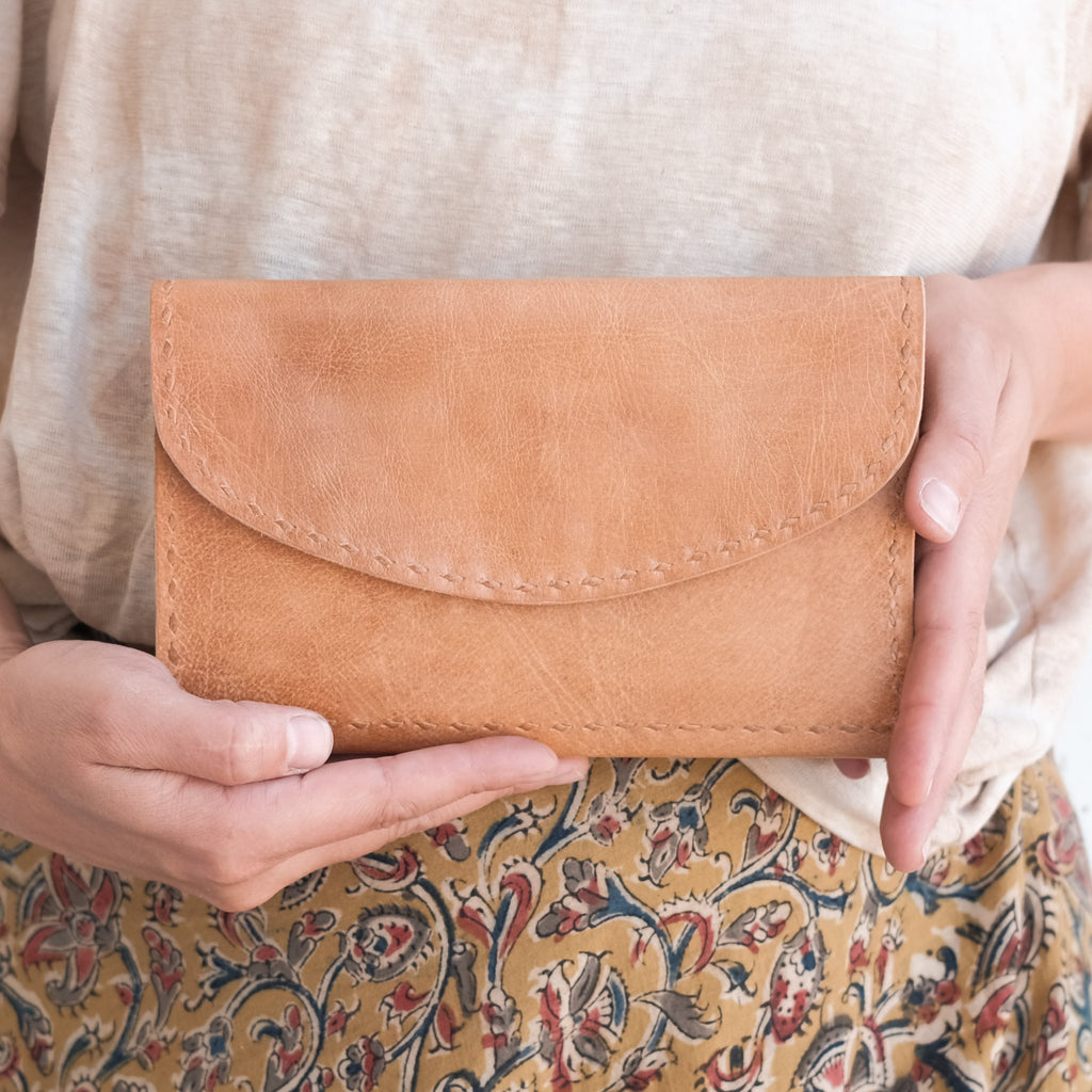 Made by the Artisan's Alliance of Jawaja - a rural cooperative located in Rajasthan, India. Vegetable-tanned leather, burnished and stitched by hand results in a piece to last a lifetime. Use adds subtlety, deepens personality and patina, and bestows a heroic character on Jawaja leatherwork.