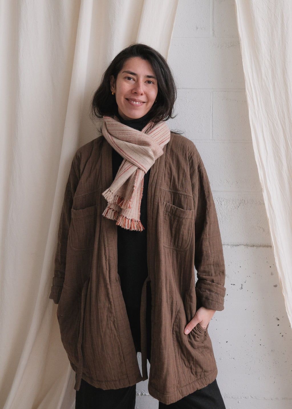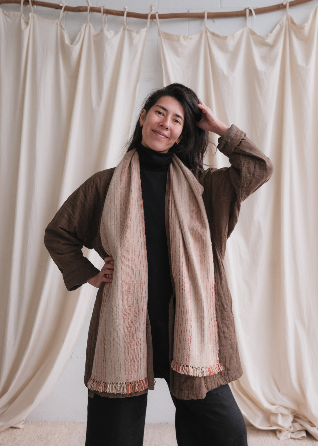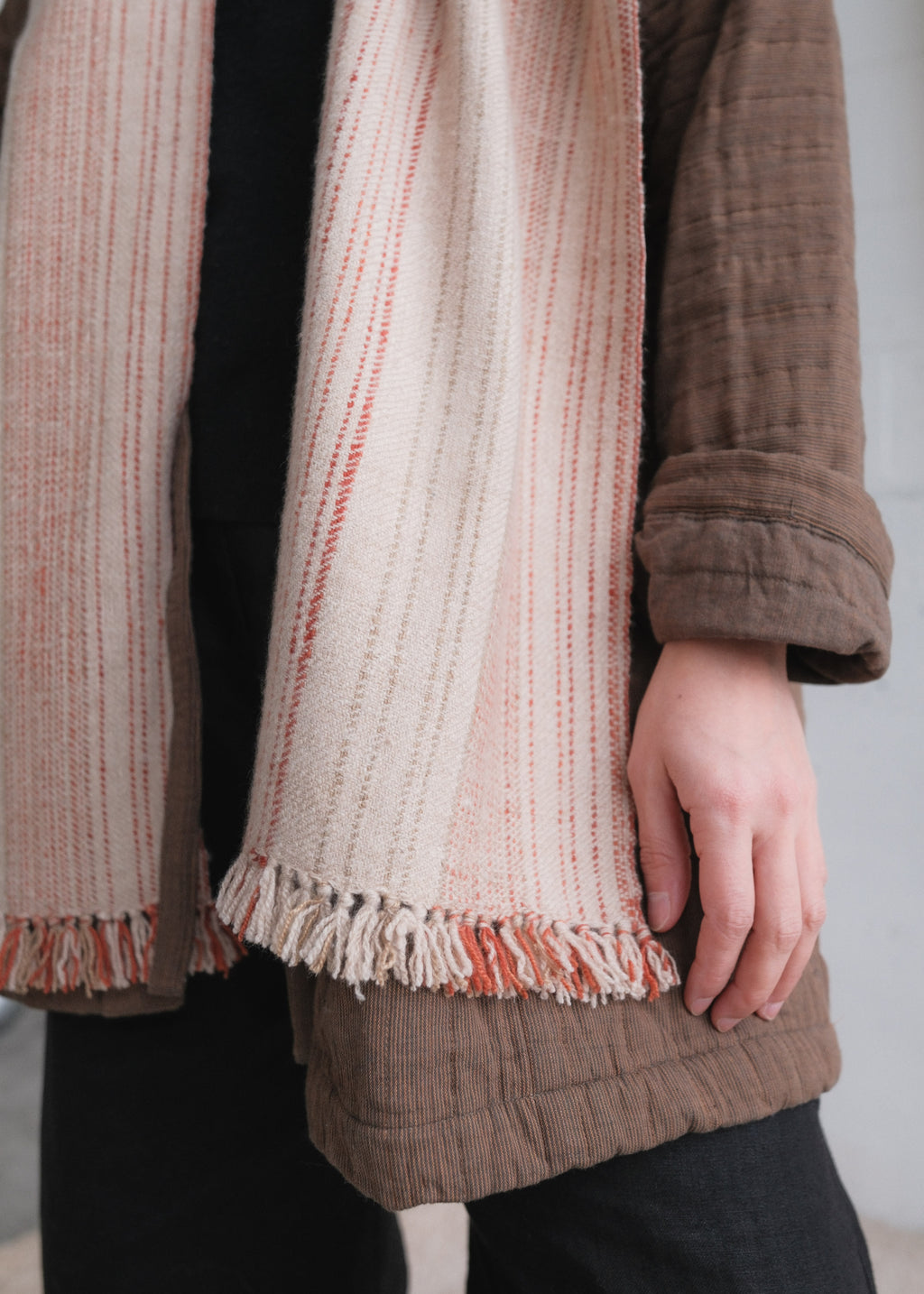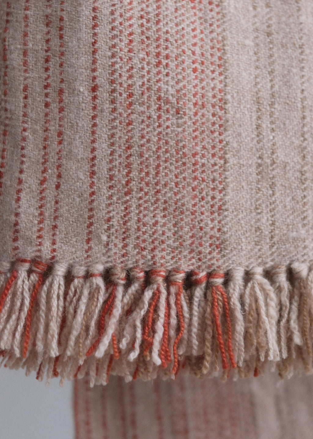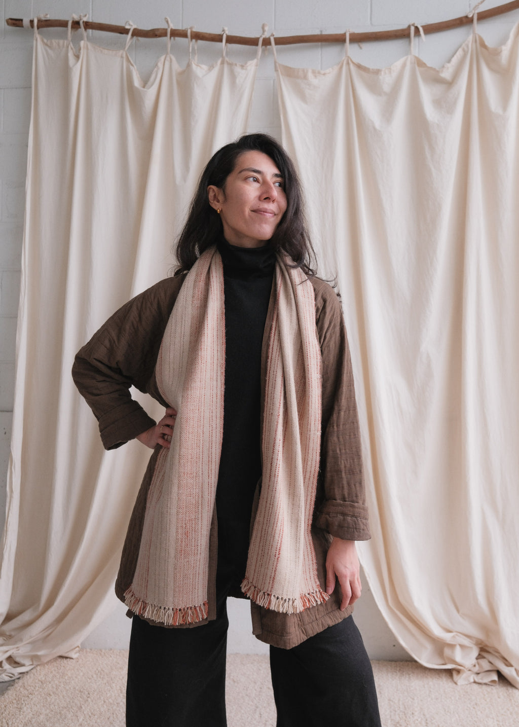 An incredibly soft shawl offering extraordinary warmth and luxury. Naturally dyed with madder and tannins this, one of a kind piece, is an elegant heirloom that you will cherish over and over again.