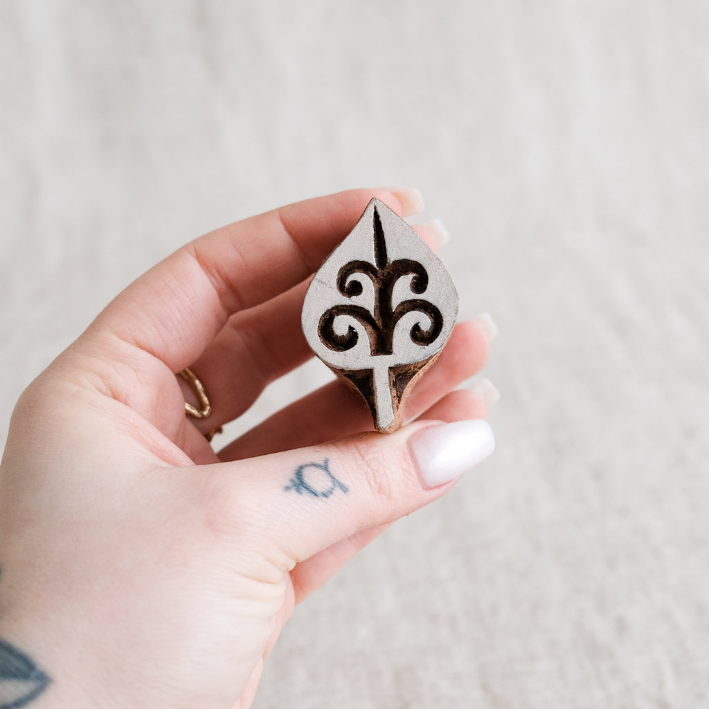 This is a hand carved teak wood block from India. Traditionally used to block print with natural dyes, these blocks will work beautifully with paints & inks on fabric and paper. They are also used by potters to make impressions in clay. Easy to work and experiment with, great for beginners to advanced artists, and a lot of fun to use with kids!
