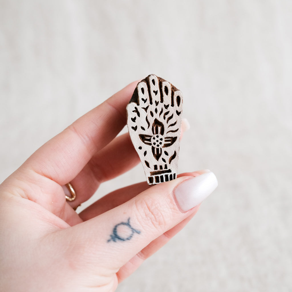 This is a hand carved teak wood block from India. Traditionally used to block print with natural dyes, these blocks will work beautifully with paints & inks on fabric and paper. They are also used by potters to make impressions in clay. Easy to work and experiment with, great for beginners to advanced artists, and a lot of fun to use with kids!