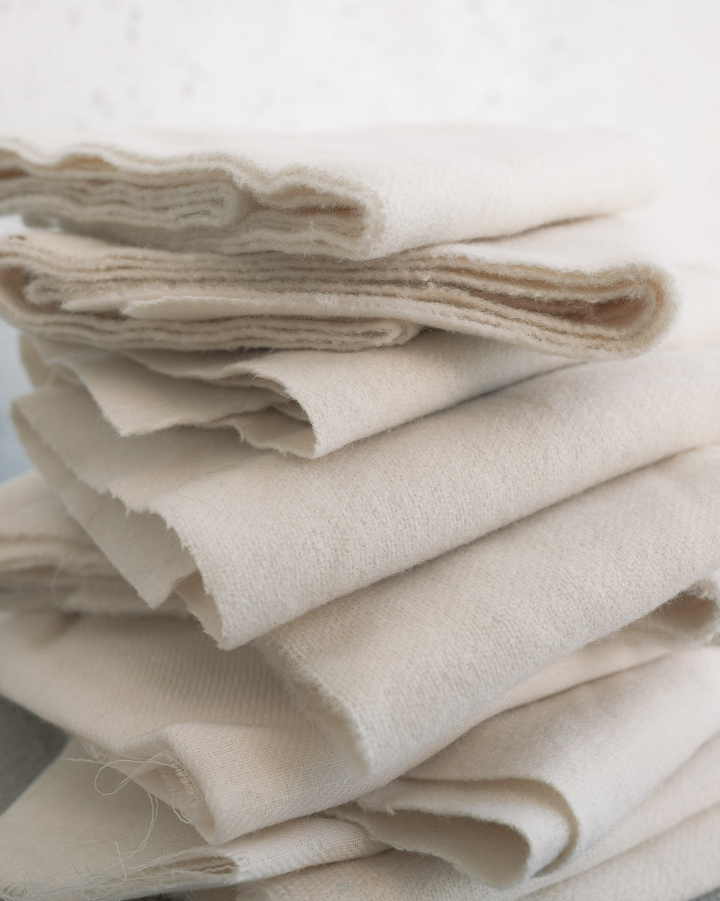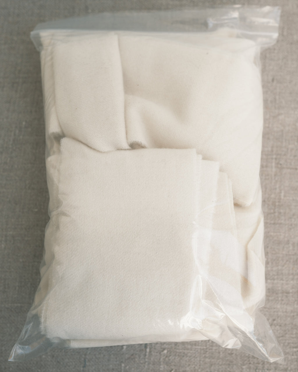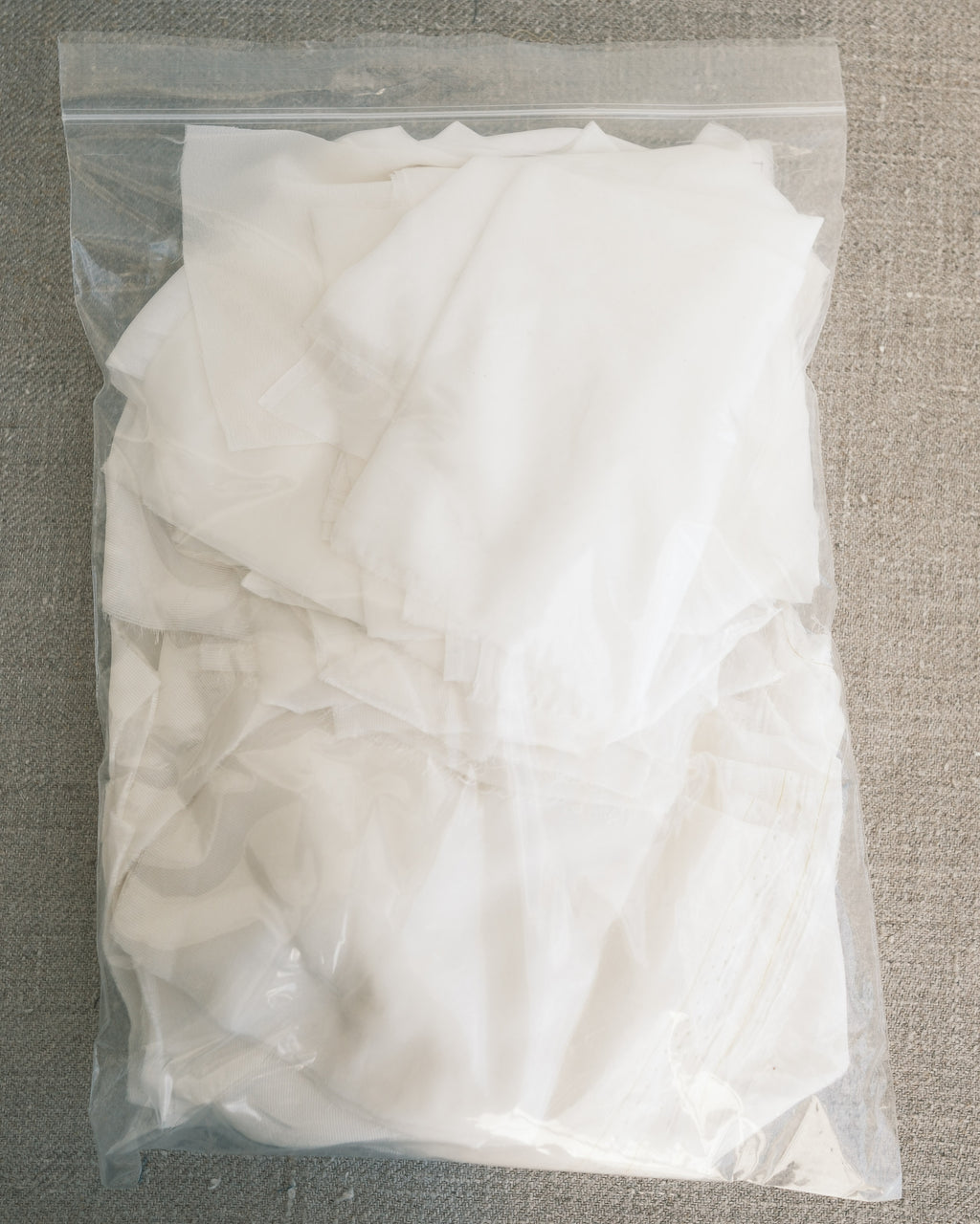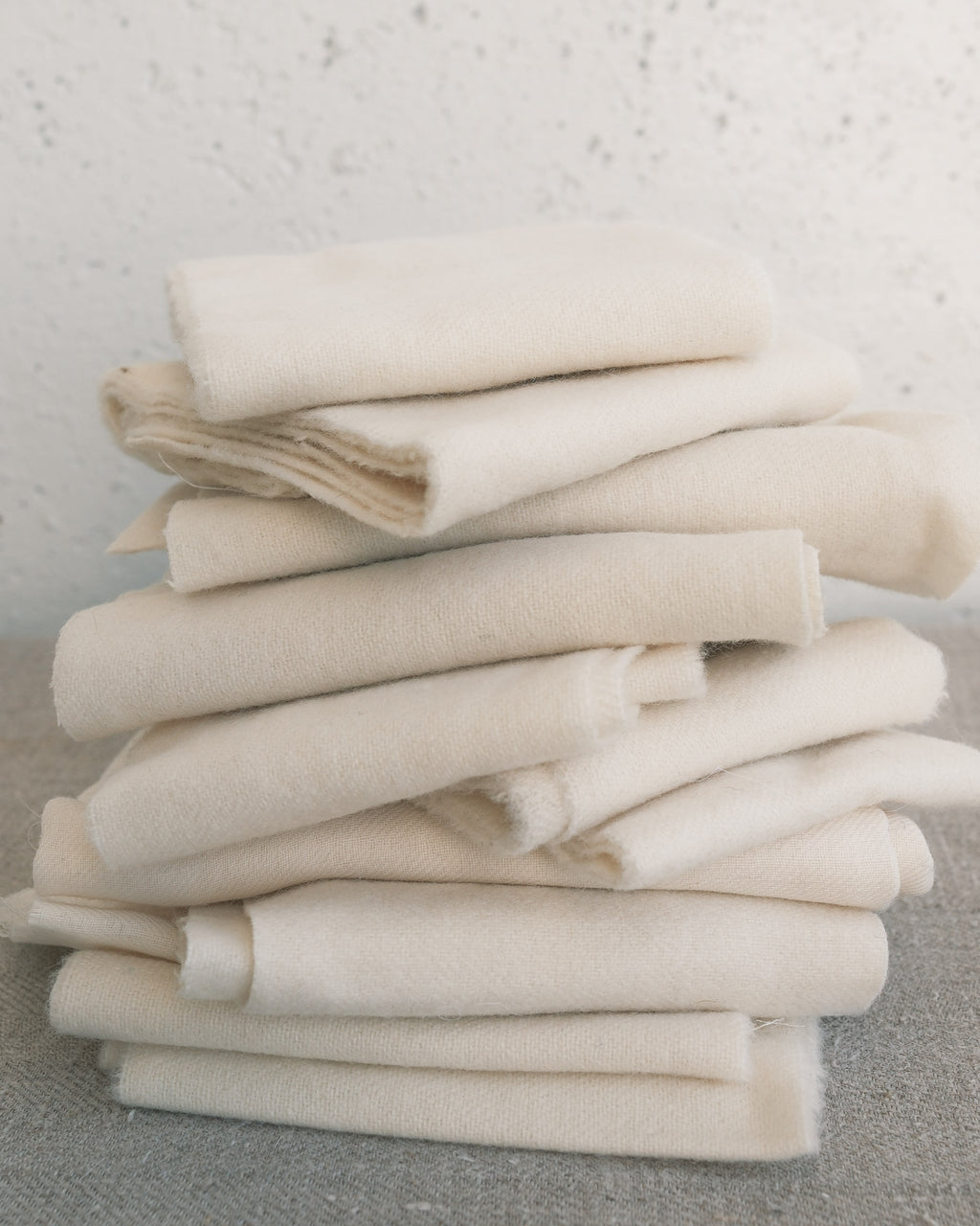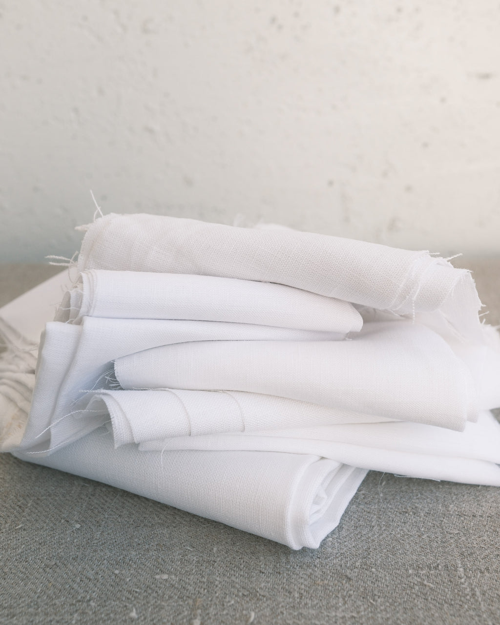 200g of mixture of natural fibres and mixture of colour offcuts. Each package includes various weights and sizes of pre-cut cloth. Great for dyeing, stitching, quilting, and other creative processes for you to dream up.