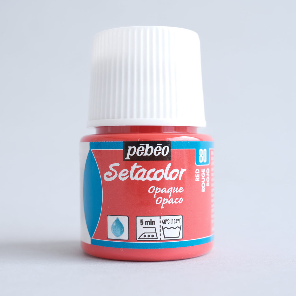 These beautiful, professional fabric paints from France can be used on most fabrics, including blends with synthetics. To render them washfast simply iron for 1-2 minutes front and back. The color range of this product is exquisite – the iridescent and opaques work well on both white and dark fabrics and the transparents are wonderful for blending, doing watercolor techniques, airbrushing etc. These fabric paints have excellent washfastness and lightfastness and leave the fabric with a very soft hand.