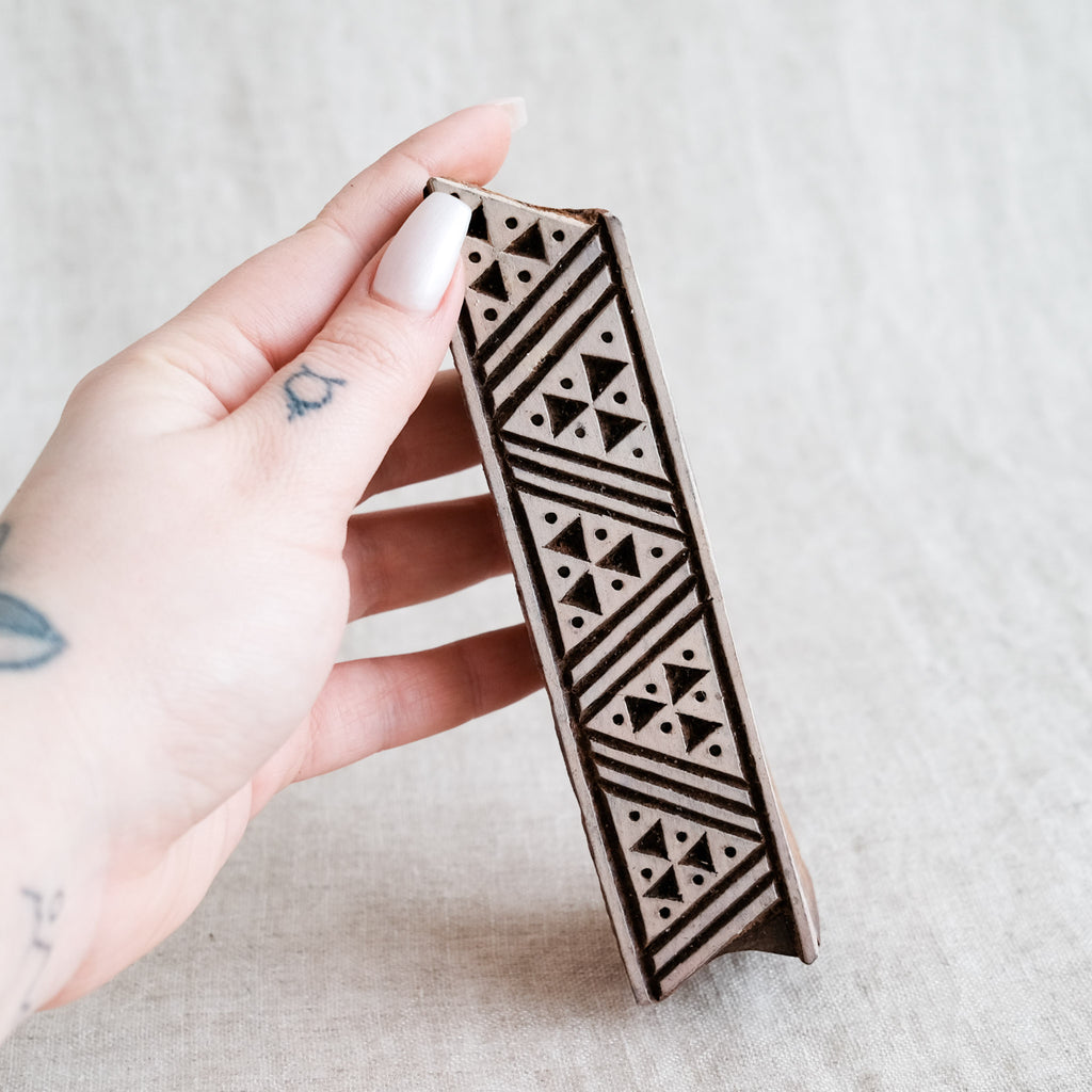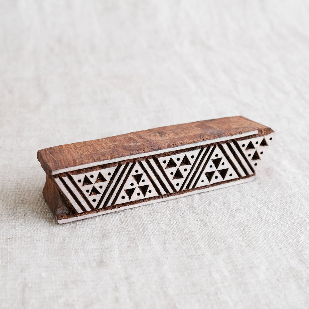 This is a hand carved teak wood block from India. Traditionally used to block print with natural dyes, these blocks will work beautifully with paints & inks on fabric and paper. They are also used by potters to make impressions in clay. Easy to work and experiment with, great for beginners to advanced artists, and a lot of fun to use with kids!