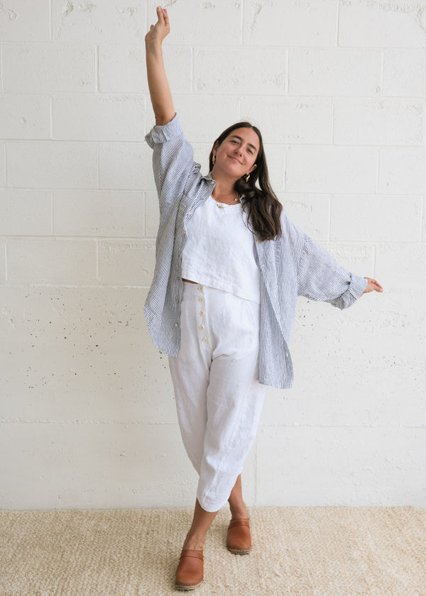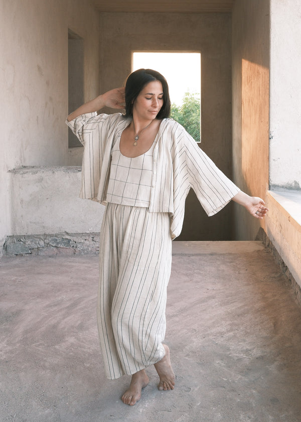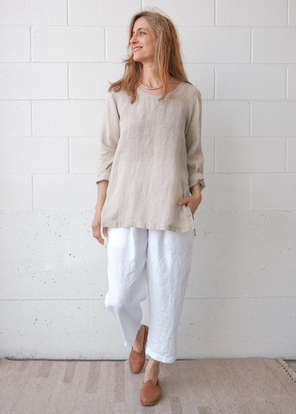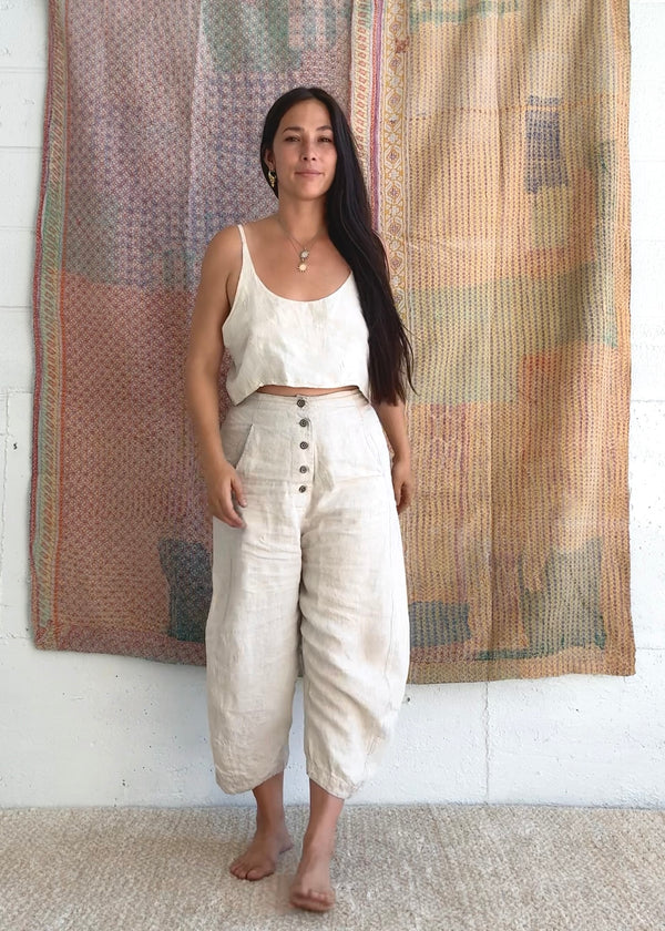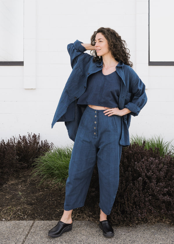 We design and sew all of our clothing in-house in our own studios in Vancouver, Canada, and in India. Our garments feature a range of artisan techniques such as handwoven cloth, handspun threads, block printing, ikat dyeing, hand-tied bandhani and natural dyes. Read more about Maiwa's Slow Clothes and how they fit a variety of body types.