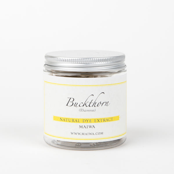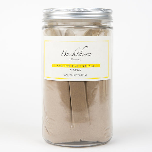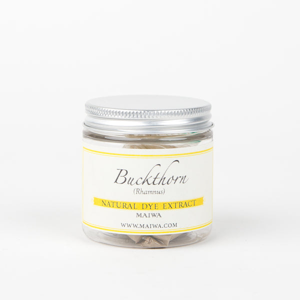 Buckthorn species are native to the Middle East, and Mediterranean. Also known as Persian berries since the warm yellow colour comes from the unripe berries. Cream of tartar can be used along with mordants for higher lightfastness.