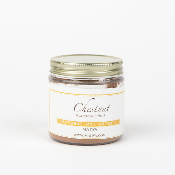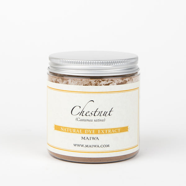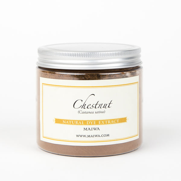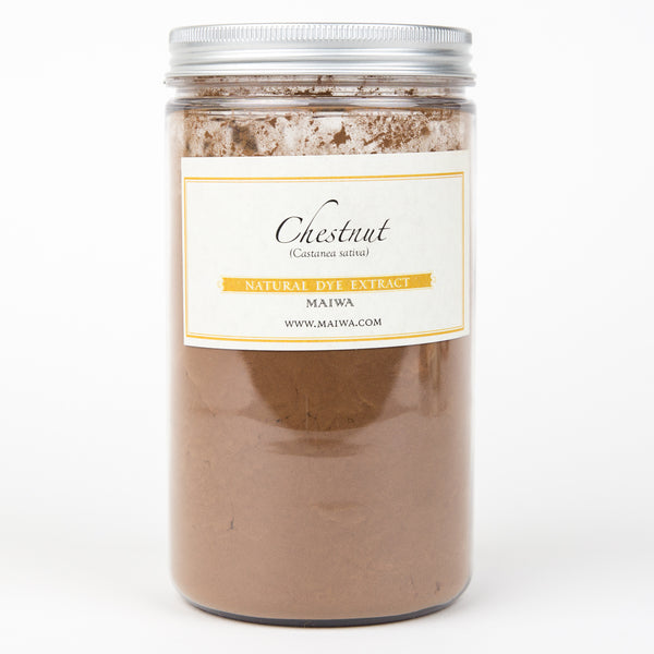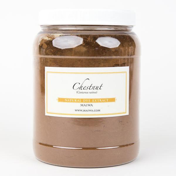 Chestnut trees grow in many parts of the world and contain a great source of tannin. They dye a warm brown colour. This dye is also well known for it’s ability to dye silk black with the addition of logwood and an iron mordant. Dyeing: Use extract on mordanted fibre at 5-10% WOF.