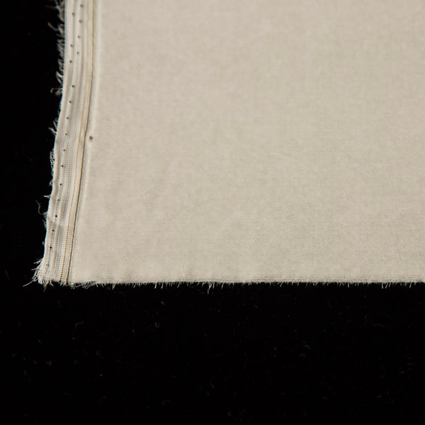 Devoré (also know as burnout) is a technique used to create semi-transparent patterning on fabric. Used particularly on velvets, this process only works on fabrics that are mix of fibre types. The cellulose fibres are burned away where the devoré paste is applied, leaving the other fibres (protein or synthetic) untouched.