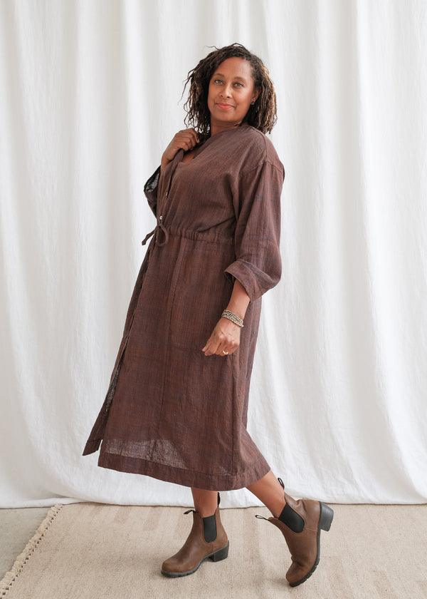 We design and sew all of our clothing in-house in our own studios in Vancouver, Canada, and in India. Our garments feature a range of artisan techniques such as handwoven cloth, handspun threads, block printing, ikat dyeing, hand-tied bandhani and natural dyes. Read more about Maiwa's Slow Clothes and how they fit a variety of body types.