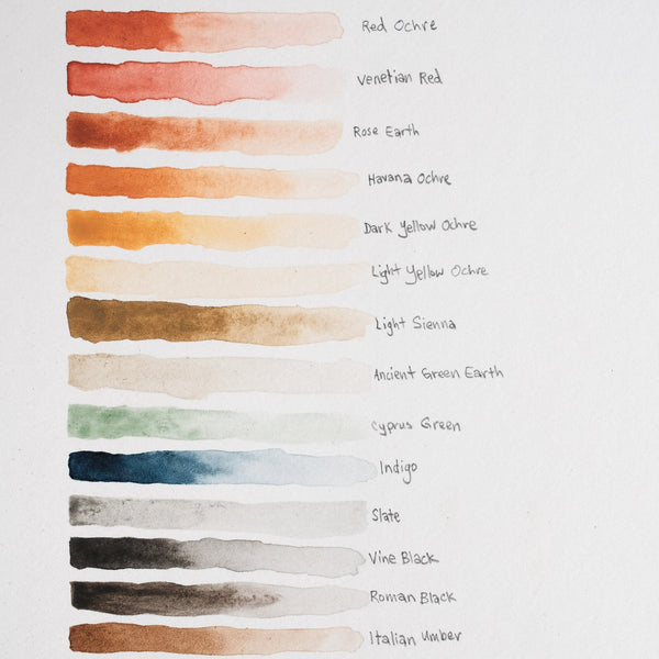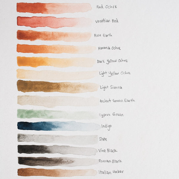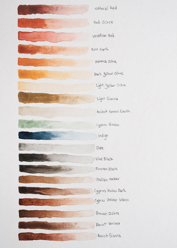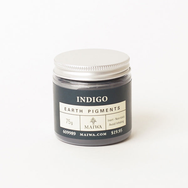 Earth pigments come from minerals, clays and oxides and are best known by names such as burnt sienna, umber and ochre. They are collected in various parts of the world for their characteristic colours. The exceptions are indigo and vine black, which are plant-based. Maiwa works with small companies who prepare these pigments using centuries-old traditional methods. Our pigments are ground extra-fine for textile use.