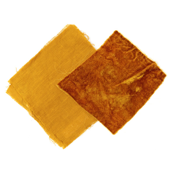 MORDANTING: Use alum mordant at 15% WOF for protein fibres and cellulose fibres (there is enough tannin in fustic so that mordanting with tannin is not required).