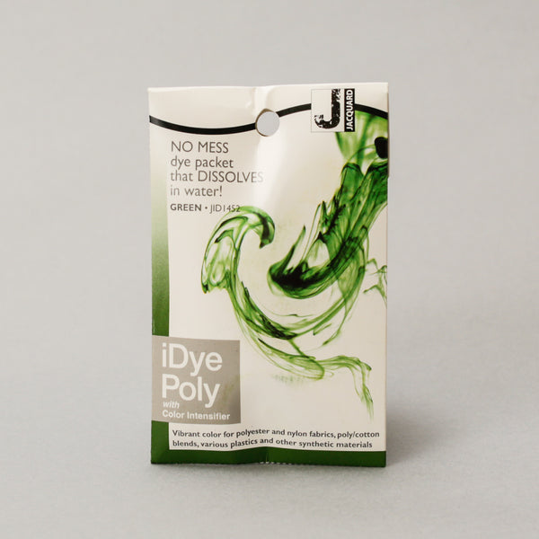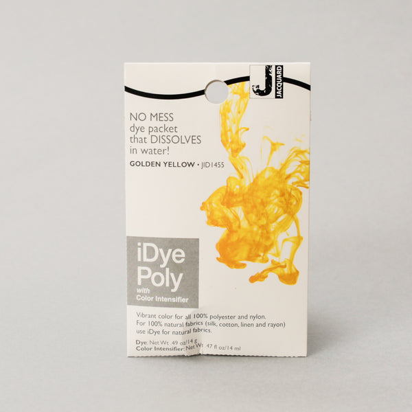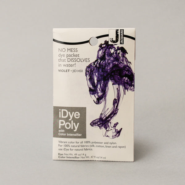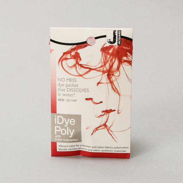 iDye Poly is for synthetic fibers such as polyester and nylon. It will colour almost anything synthetic, including plastics and acrylics, buttons, frisbee discs, 3D printed objects, toys, dolls, wigs, urethane coatings and more! The dye comes in a dissolvable packet, so there are never any messy powders to handle: simply drop the packet in a pot of water, add your fabric or objects and bring to a boil!