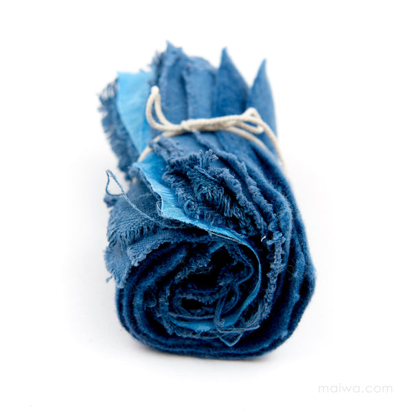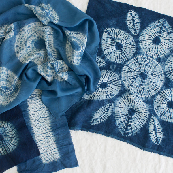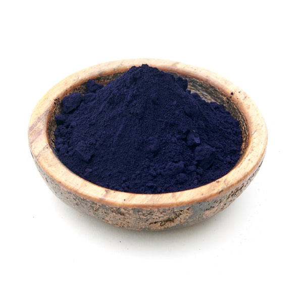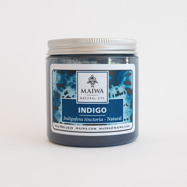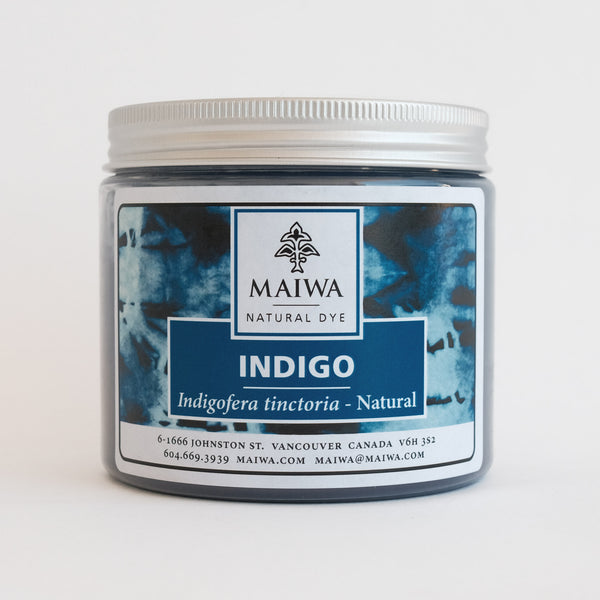 Indigo (natural) – natural indigo powder is an extract prepared from Indigofera tinctoria which is cultivated for this purpose. Indigo is the legendary source of colourfast blues and its ability to produce a wide range of shades has made it the most successful dye plant ever known. Indigo grows all over the world but flourishes best in hot, sunny, humid areas. Indigo can give clear blues that range from the tint of a pale sky to a deep navy that is almost black. Our indigo comes from a farm in south India and is very strong (approx. 40% indigotin). It reduces beautifully in an indigo vat.