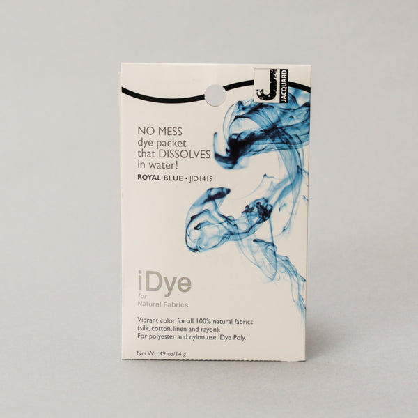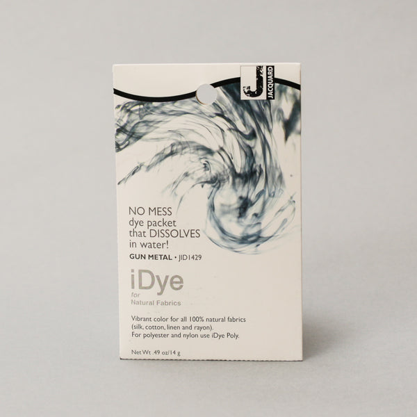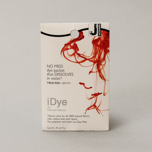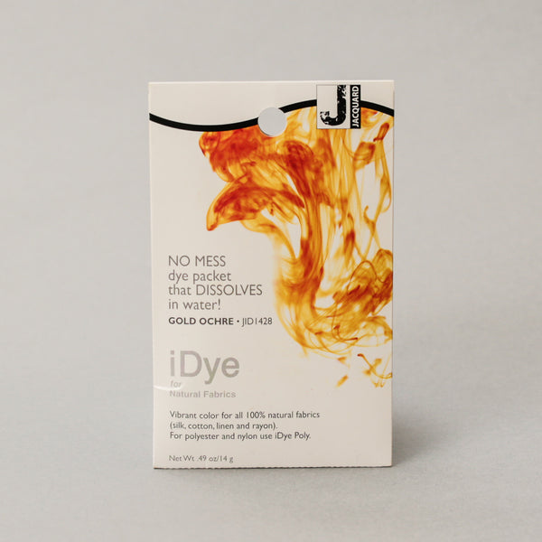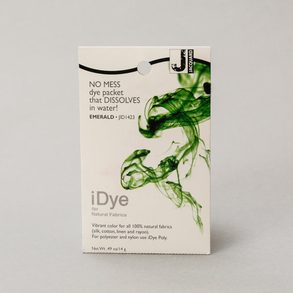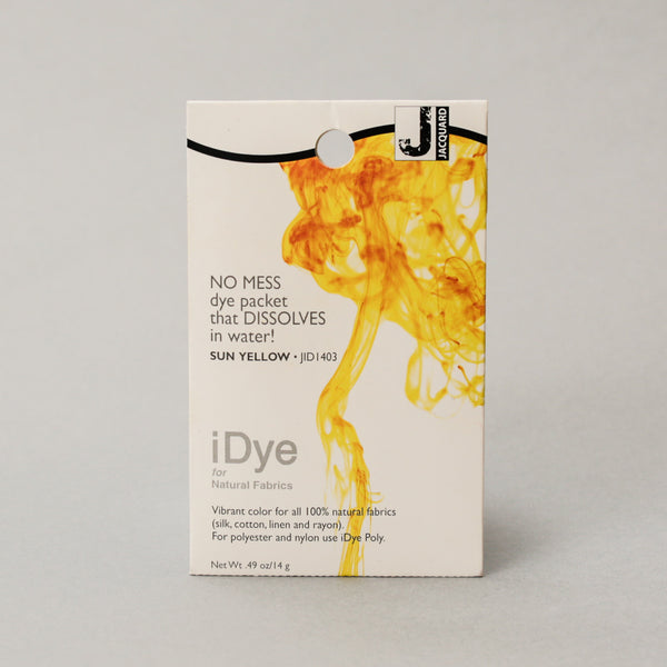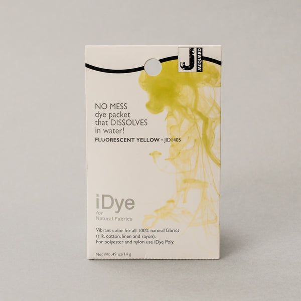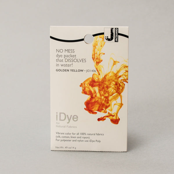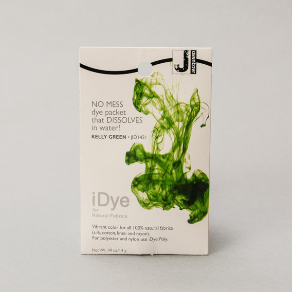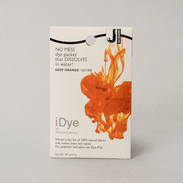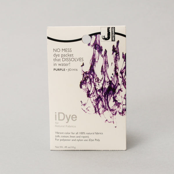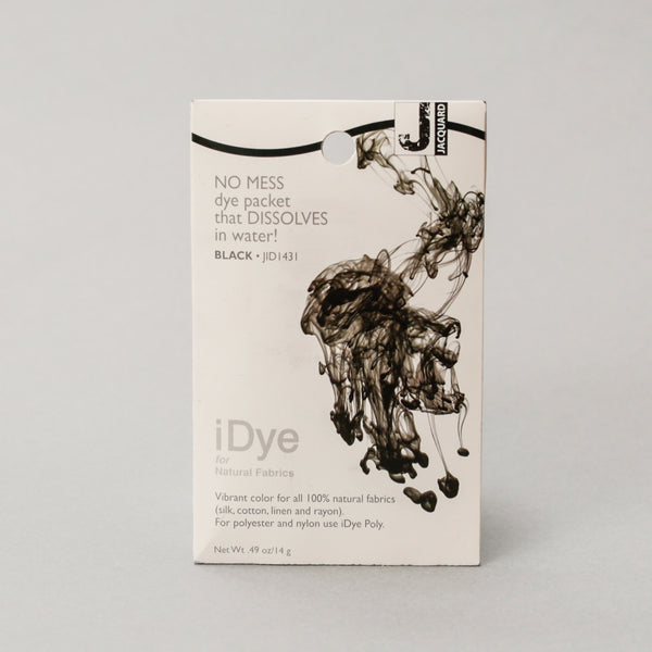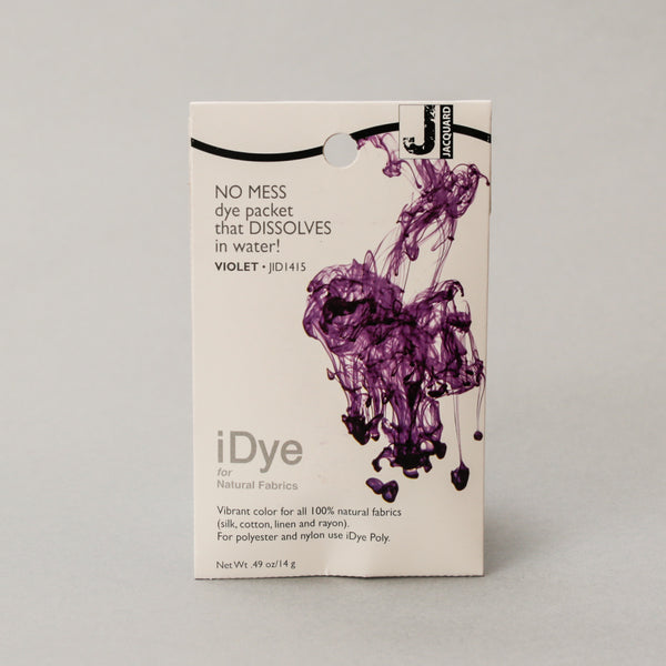 Jacquard iDye for natural fabrics comes in a dissolvable packet, so there are never any messy powders to handle: simply dissolve the packet in the dye bath or drop it in the washer, then add the fabric. iDye is a hot water dye that produces brilliant colours on any natural fabric and may be used on the stovetop or in the washing machine.