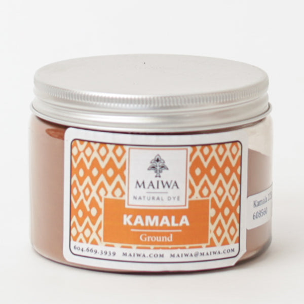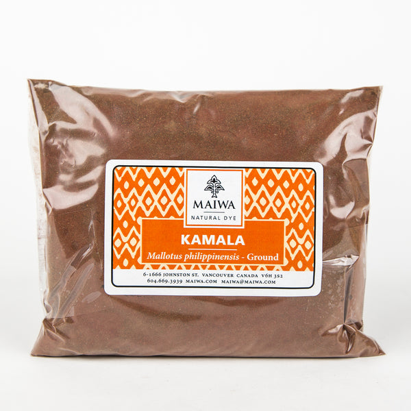 Kamala – Kamala – is a powdery substance obtained from the fruit of Mallotus philippinensis, a small evergreen that is also known as the monkey-face tree (because monkeys are said to rub their faces in the fruit). Kamala is found throughout tropical India. Kamala dye is very similar in behavior and colour to annatto. Kamala dyes golden yellows to tangerines with moderate lightfastness on cotton. Lightly deeper shades are obtained on protein fibres. When iron is added deep moss green is obtained. Over or under dyed with indigo produces forest greens.