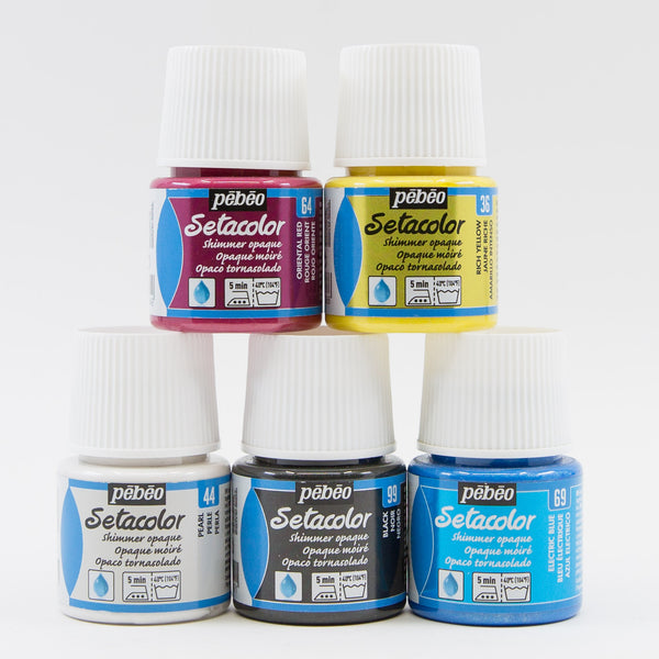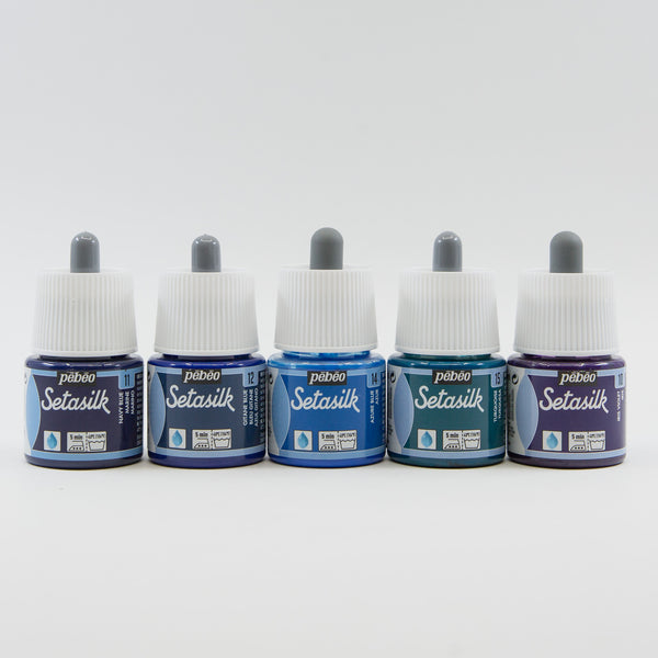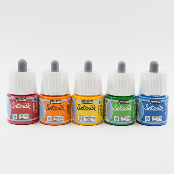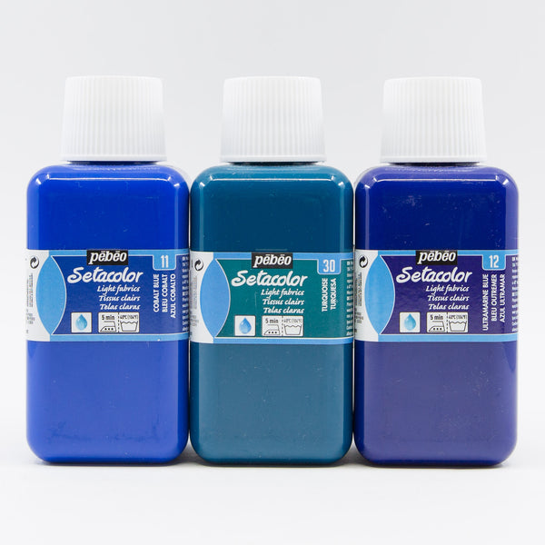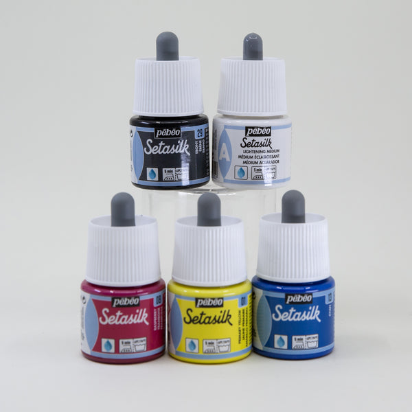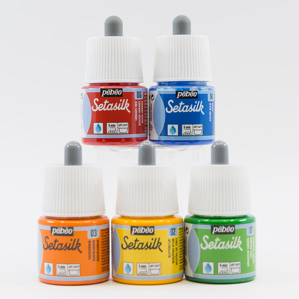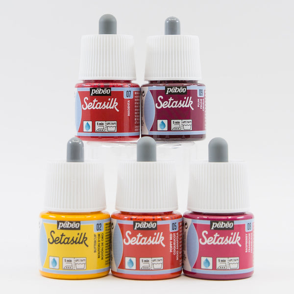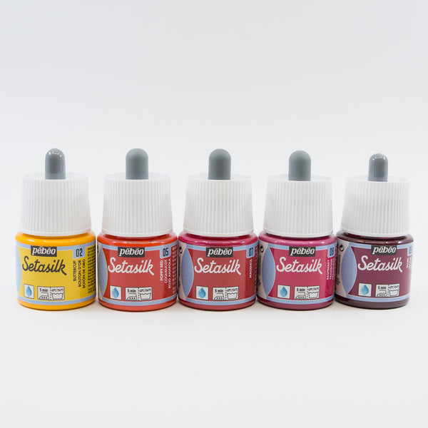 Setacolor and Setasilk fabric paints grouped in several exquisite colour palettes for you to explore. These professional fabric paints from France can be used on most fabrics, including synthetic blends. To render them washfast, simply iron for 1-2 minutes front and back. These fabric paints have excellent washfastness, lightfastness and leave the fabric with a soft hand.
