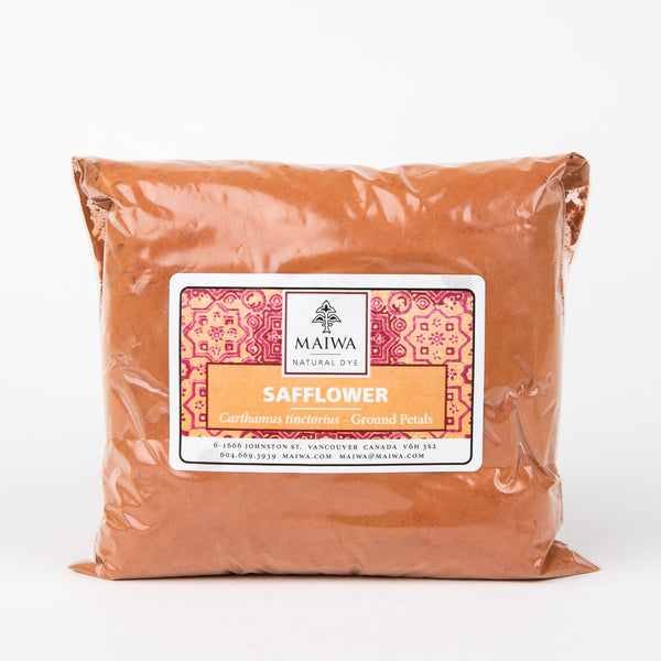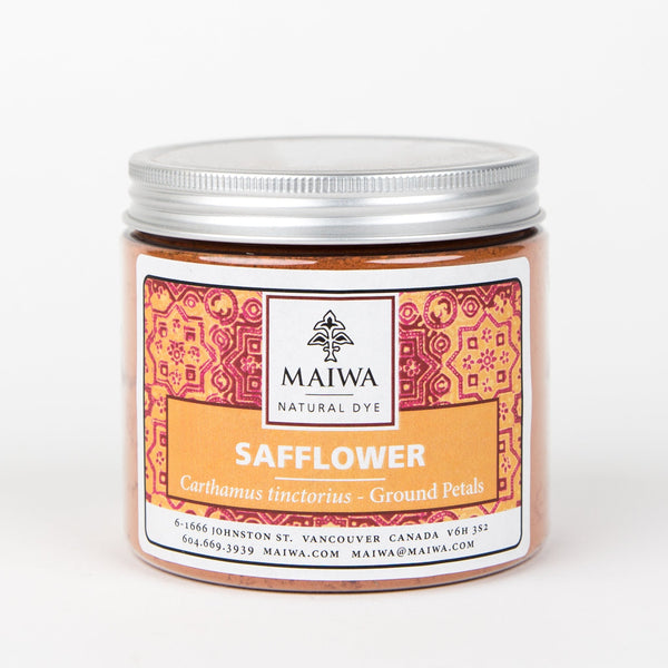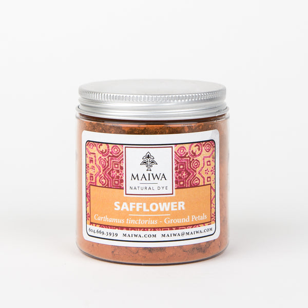 Safflower – Carthamus tinctorious, is an annual thistle. This plant is most known for the oil that can be derived from it’s seeds, however, the petals are a most magical dyestuff. Yellows, surprisingly sharp pinks, orange-reds, and corals can be extracted from safflower. Soaking petals in water at room temperature gives a yellow which can be collected and used to dye any modanted natural fibre. Repeated soaking will exhaust the yellow at which point pinks may be obtained by “turning the bath” (drastically changing the pH to alkaline and then back to slightly acidic).