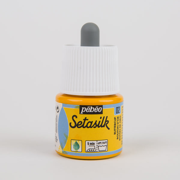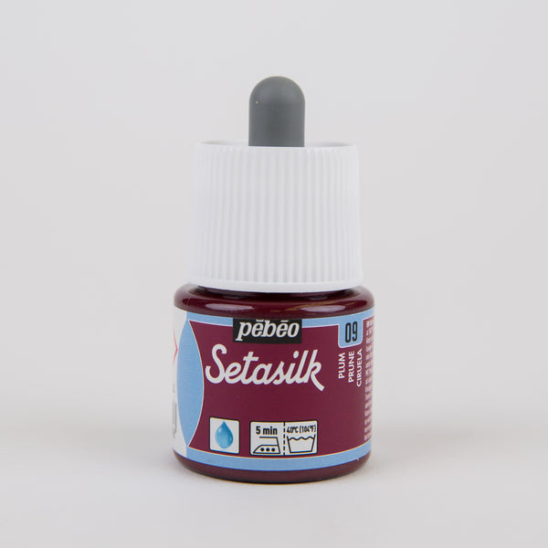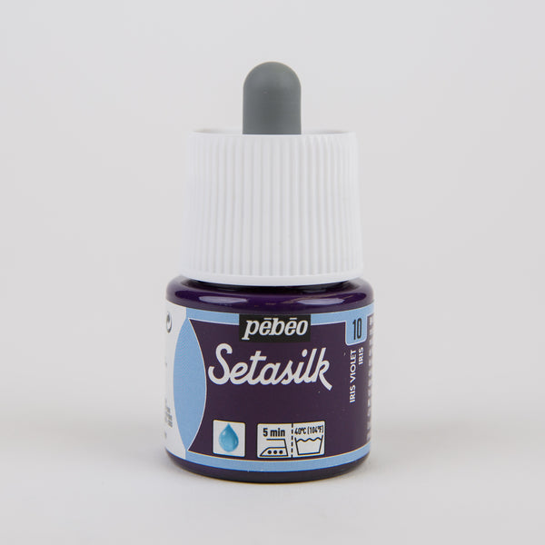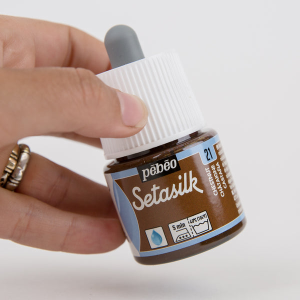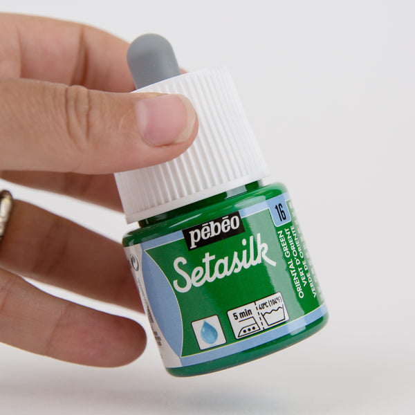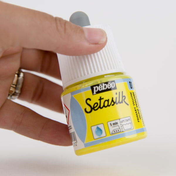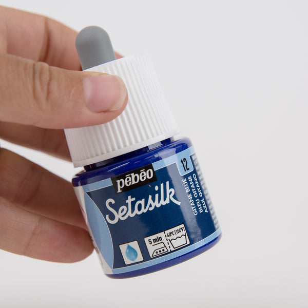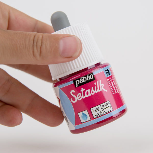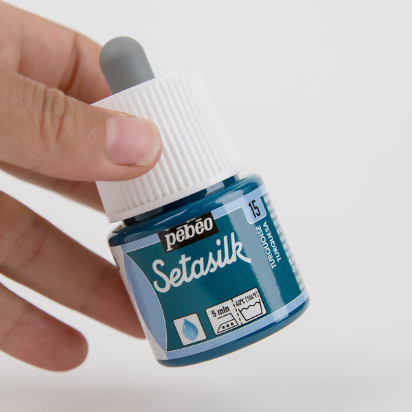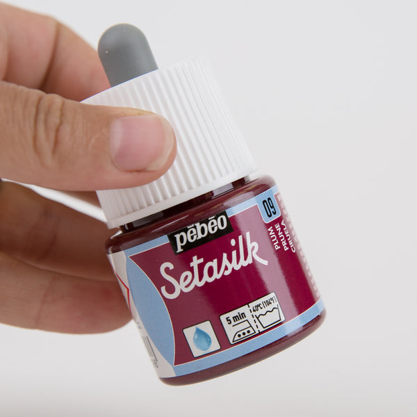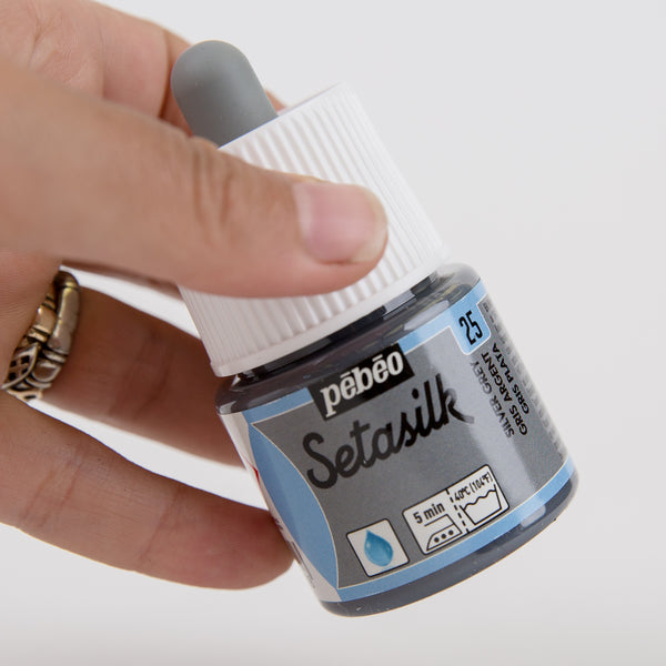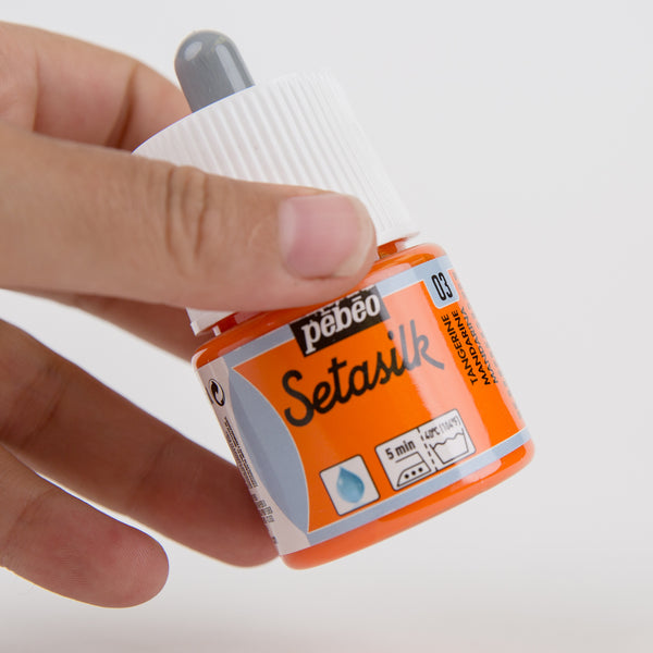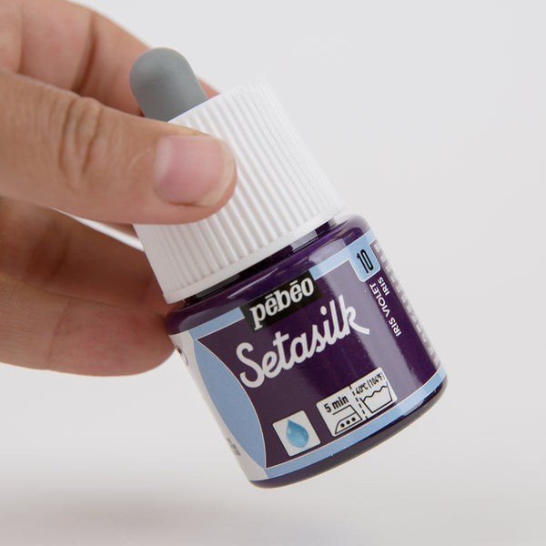 We feel the Pebeo Setasilk line is the best “no-steam” silk paint on the market. It comes in many vibrant colours and flows freely and evenly onto silk or cotton. It can be used with most of the silk painting techniques including resist, salt, watercolour, and batik. Best of all this paint simply requires ironing to fix. After a wash to remove resist or excess salt, the fabric is soft and retains its natural sheen.
