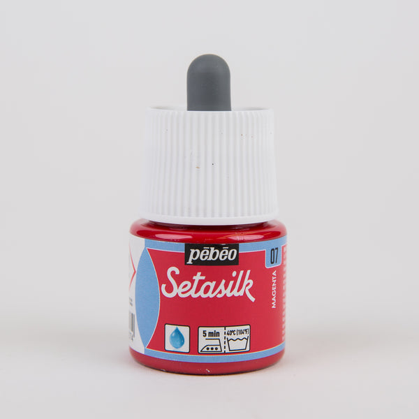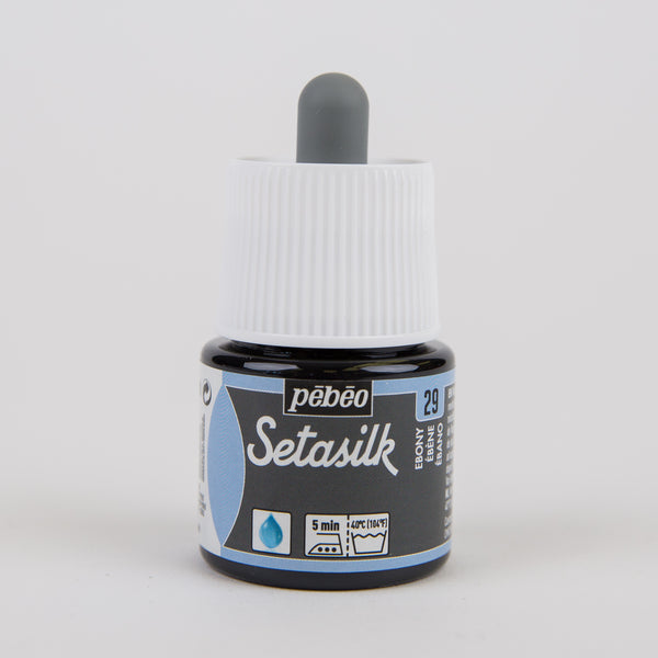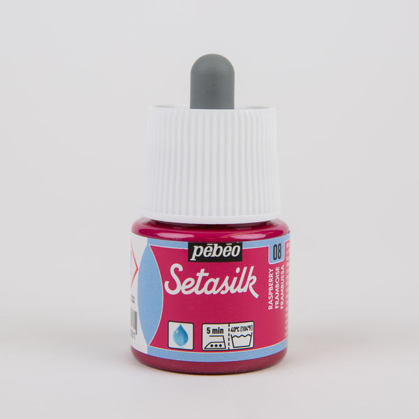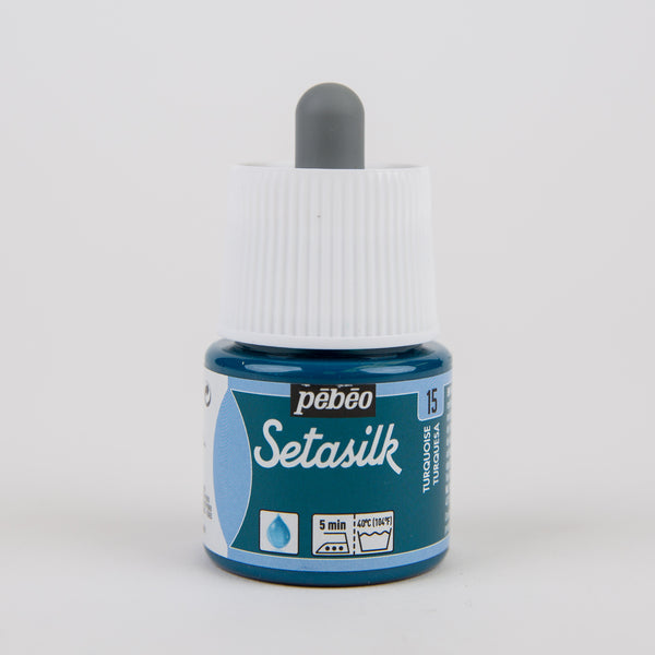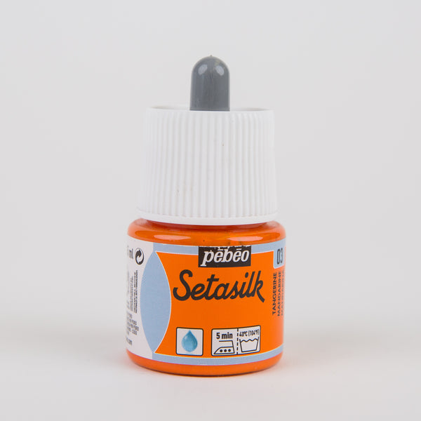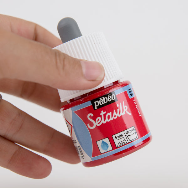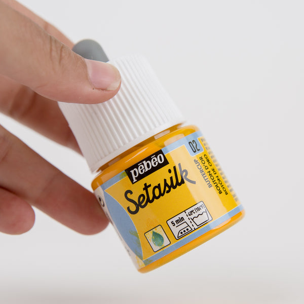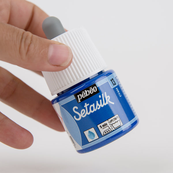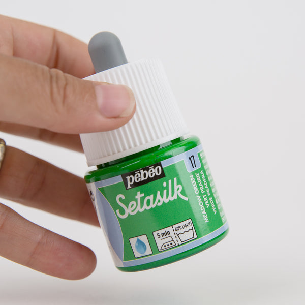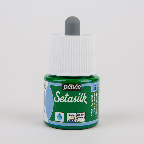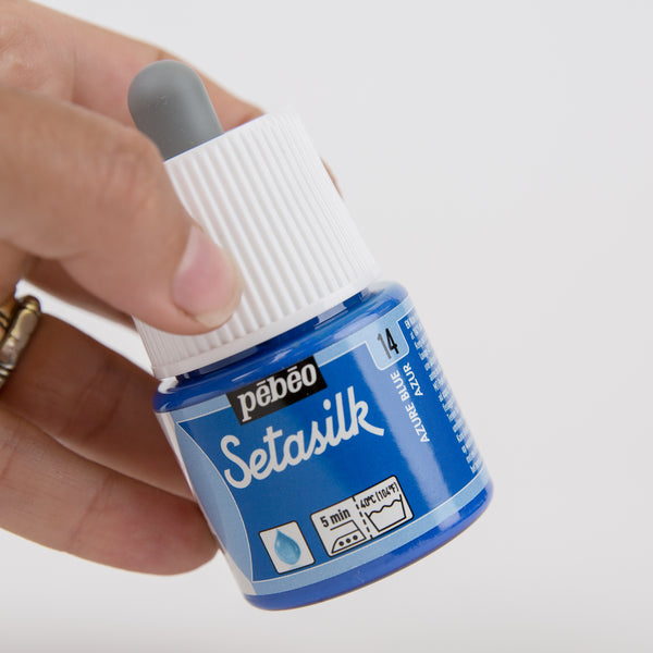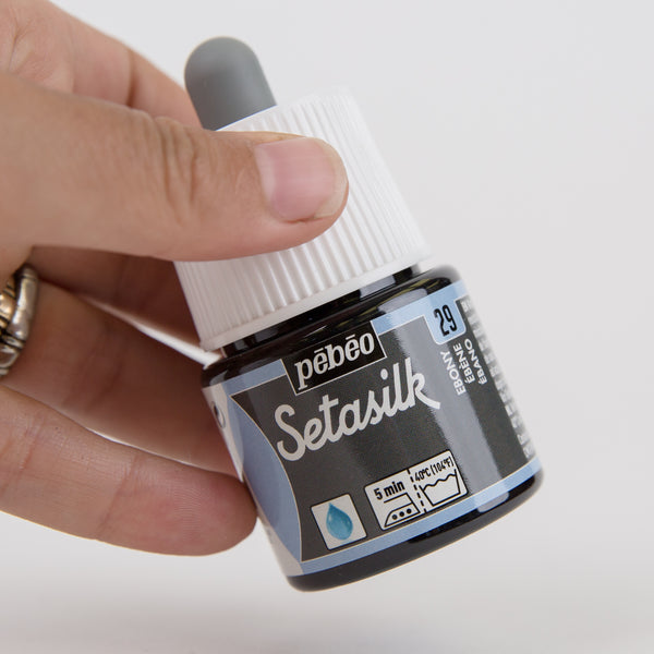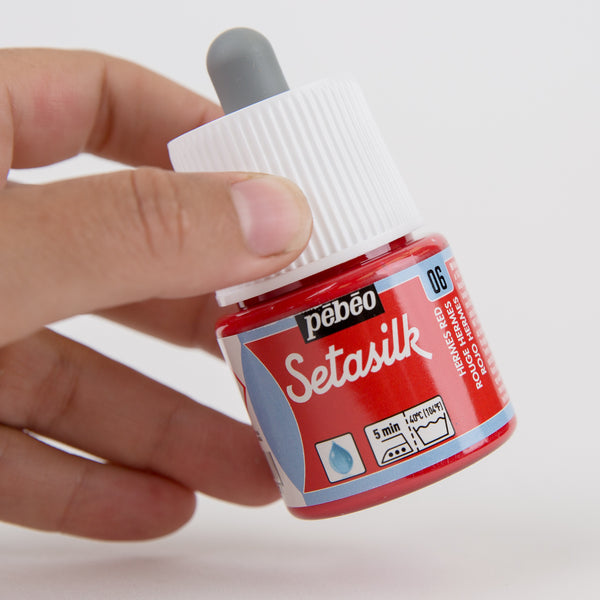 We feel the Pebeo Setasilk line is the best “no-steam” silk paint on the market. It comes in many vibrant colours and flows freely and evenly onto silk or cotton. It can be used with most of the silk painting techniques including resist, salt, watercolour, and batik. Best of all this paint simply requires ironing to fix. After a wash to remove resist or excess salt, the fabric is soft and retains its natural sheen.