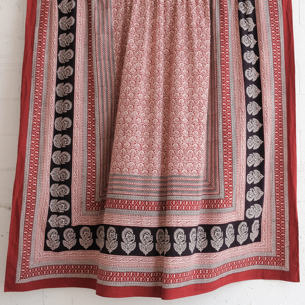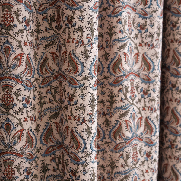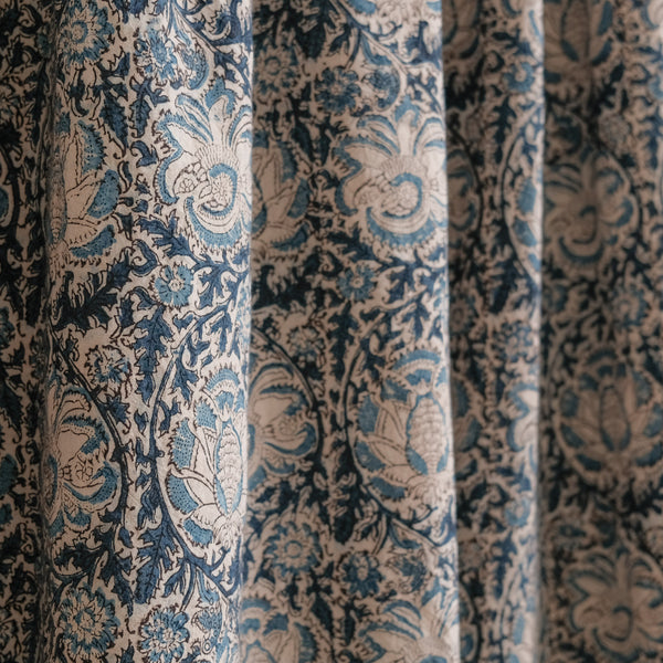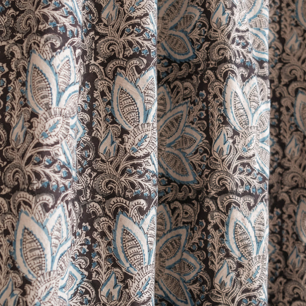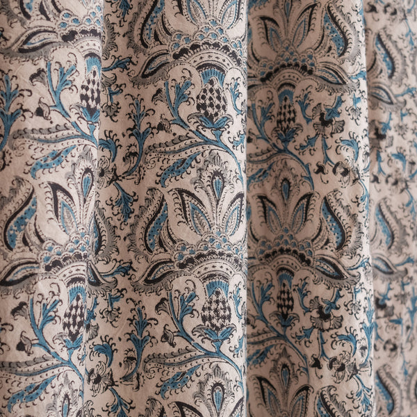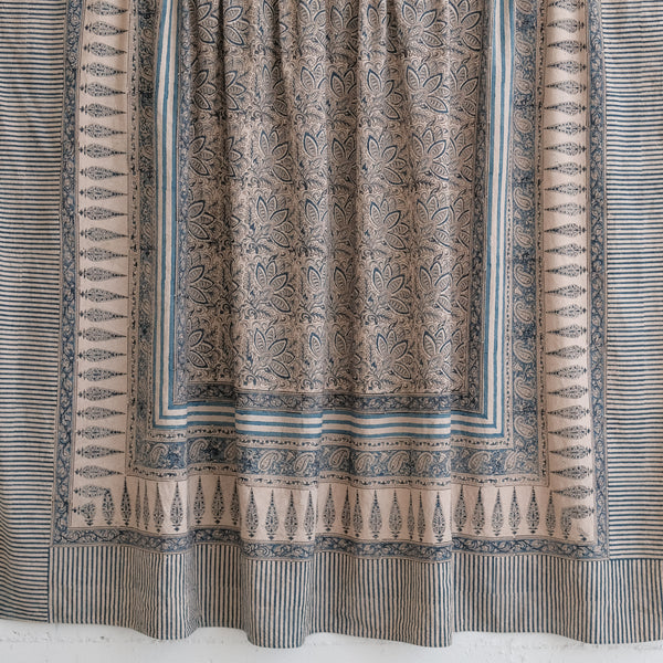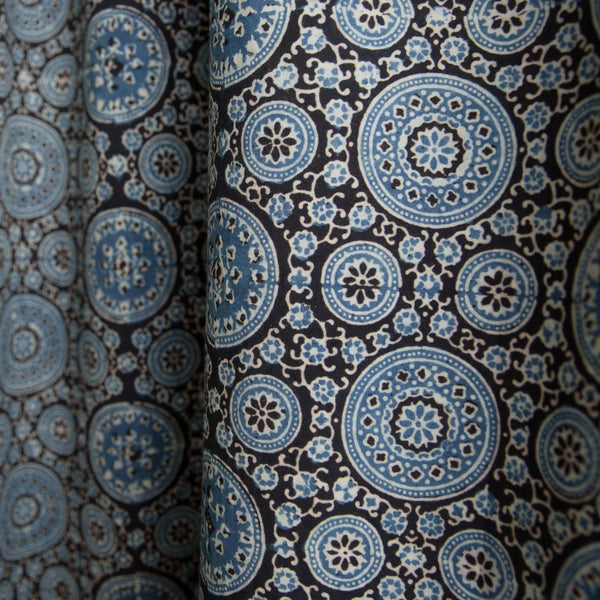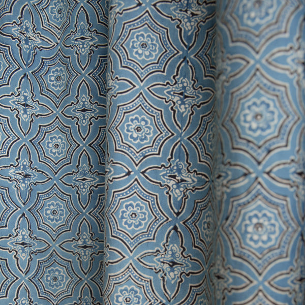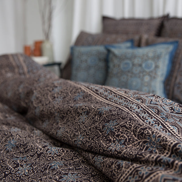 Our naturally dyed organic cotton sheets feature four traditional block printing techniques: Ajrakh, Dabu, Kalamkari, and Bagh. For centuries, wooden blocks have been used to print eloquent geometric patterns on cotton. These patterns are timeless, revealing a remarkable play between figure and line.