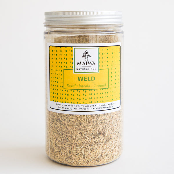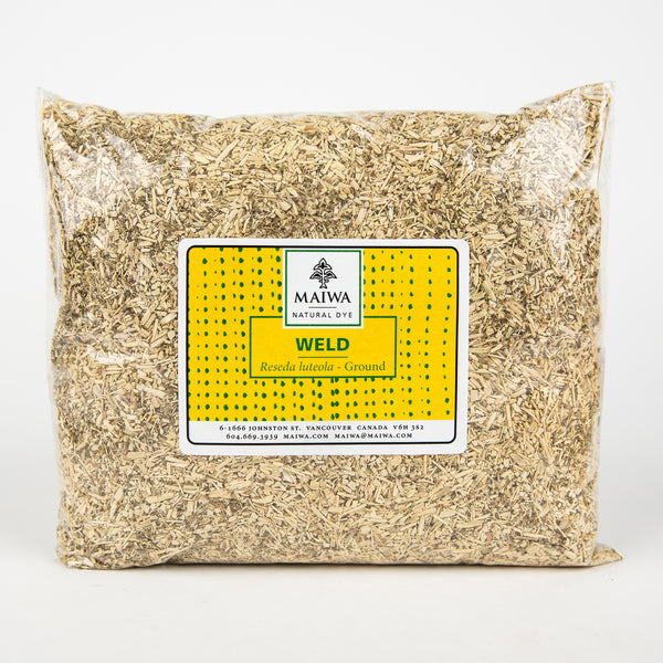 Weld - Reseda Luteola is also known as Dyers Weld, Dyers Rocket, and Dyers Mignonette. It produces an excellent light and washfast yellow and is a strong clear yellow to combine with indigo for emerald and leaf greens. Traditionally cultivated throughout Europe as a yellow dyeplant it still flourishes on embankments or beside railways and roads. Weld gives strong intense yellows which are clear and bright. The strength of these colours makes weld a good choice for overdyeing with indigo to obtain teals and greens. can be dyed at 30-50% WOF for a medium depth of shade.